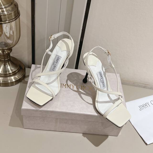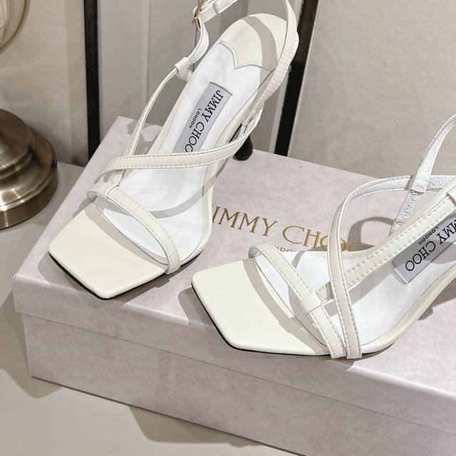 / Jimmychoo吉米周 Ss,专柜限量款方头水滴跟,交叉一字带,简约大气,后带工形 给人清爽大气的感觉! 巨星肯豆同款 水滴细高跟 著名模特 各界名媛网红同款