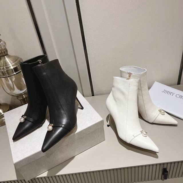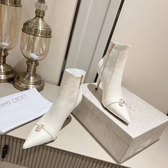 Jimmychoo短靴精美 时尚 奢侈品顶级货 专柜同款饰扣 精益的工艺品和手工真皮大底 羊皮内里透气细腻材质:牛皮面料 DDD 跟高8:5Cm标准码35-39 定制34和40 41 DDD 颜色:黑色牛皮 米白牛皮 DDD 工厂p价 DDD