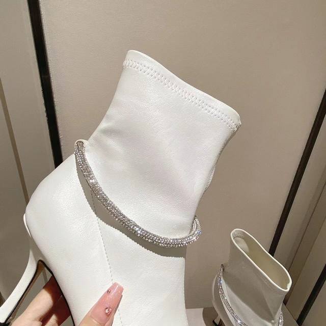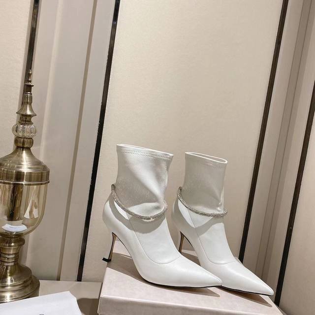 Jimmychoo 吉米.周仰杰高跟弹力短靴.原版开发.顶级品质.时尚性感.捷克钻装饰,靴子界的主流款鞋头细尖饱满、微微上翘做到了原版精髓定制纳帕弹力皮 软度做