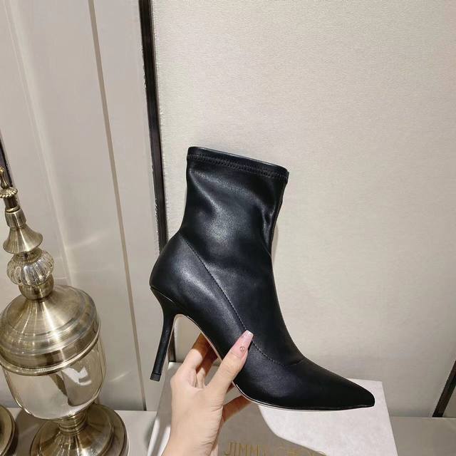 Jimmychoo 吉米.周仰杰高跟弹力短靴.原版开发.顶级品质.时尚性感.靴子界的主流款鞋头细尖饱满、微微上翘做到了原版精髓定制纳帕弹力皮 软度做到柔软不塌一