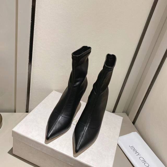 / Jimmychoo 吉米.周仰杰高跟弹力短靴.原版开发.顶级品质.时尚性感.靴子界的主流款鞋头细尖饱满、微微上翘做到了原版精髓定制纳帕弹力皮 软度做到柔软不塌一