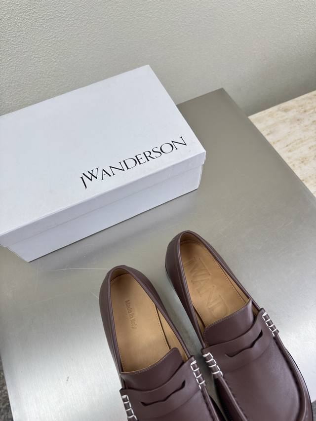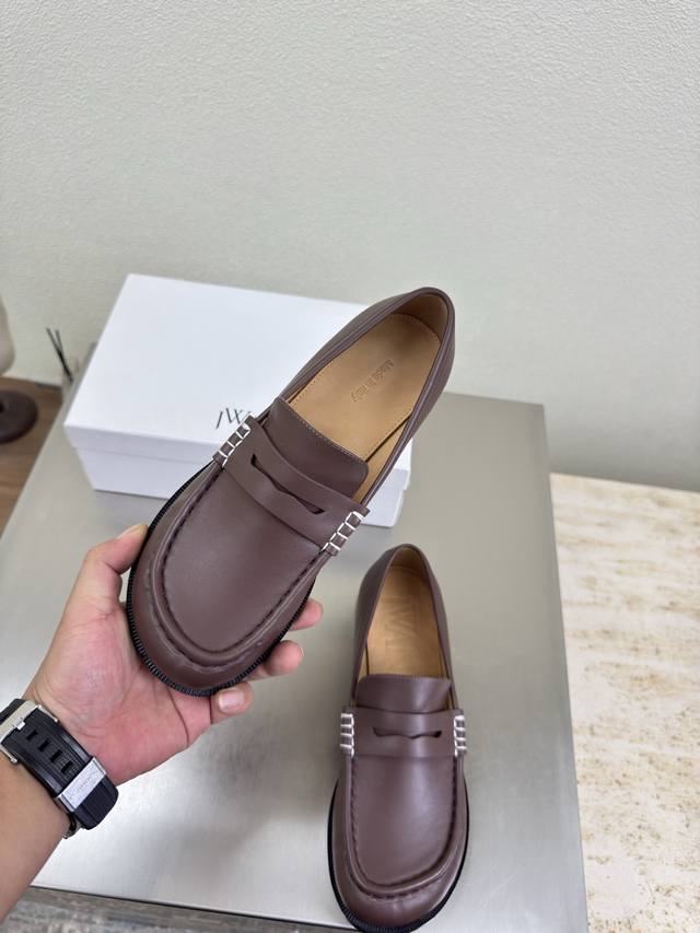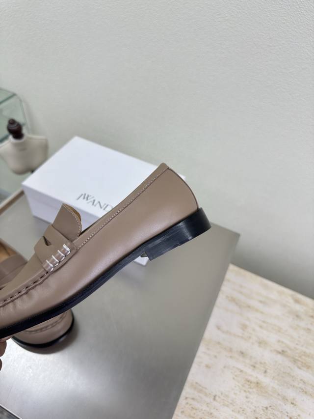 Jw 手工缝制 经典款 款乐福鞋 即可福鞋 J W 设计师品牌 女鞋 咖啡&卡其色牛皮档次满满 防滑大底设计 有着若隐若现的魅力。 元素的加入为精致的鞋体注入更