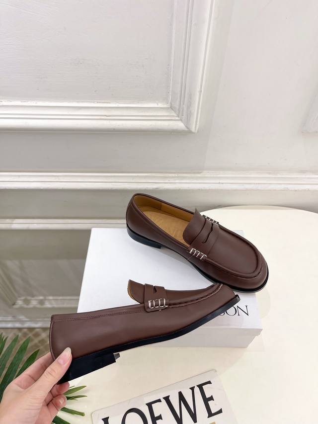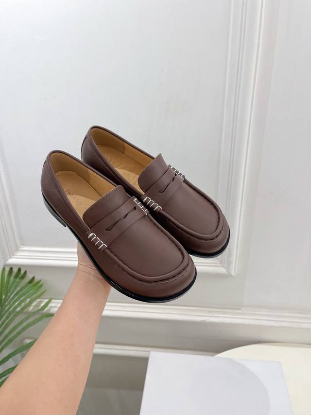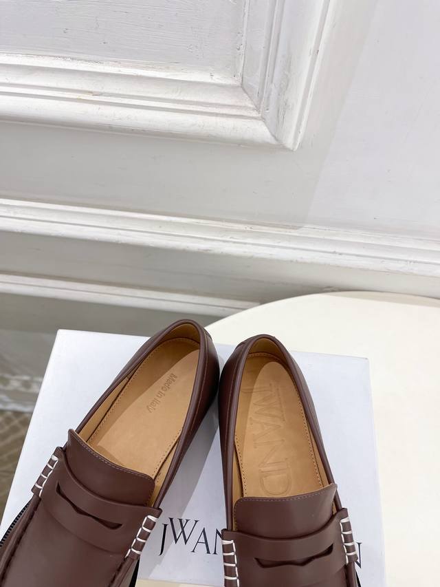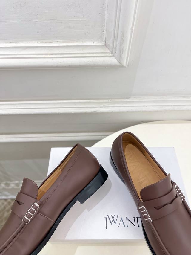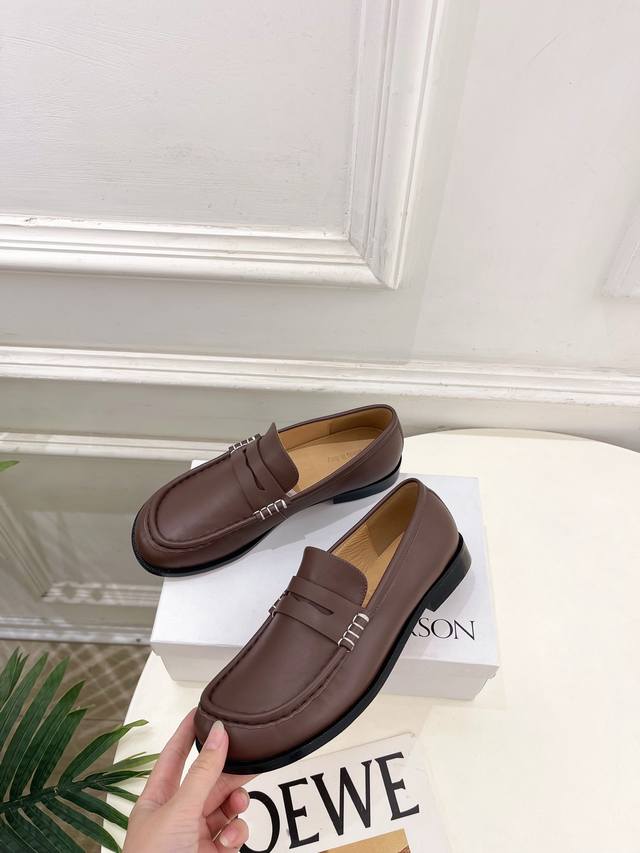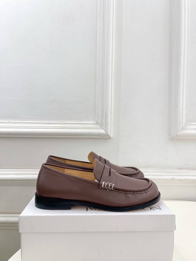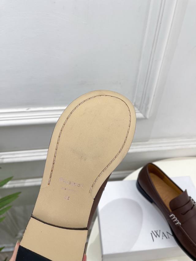 Jw Anderson 2025秋冬新品 经典复古简约乐福鞋 DDD 作为这两年最受欢迎的设计师牌,设计简单、细节巧妙、清新脱俗! 不想满大街撞款的可以看看这个品牌,比较小众却又是那么好搭配,Ins、小红书随处可见这个品牌的身影 !Bs原版一比一定制! DDD 鞋面:原版特定麂皮 牛皮 DDD 内里:进口小羊皮 DDD 大底:原版开模定制防滑大底 DDD 跟高:2Cm DDD 码数:35~39 40.41订做不退换 DDD 出厂价pp: DDD