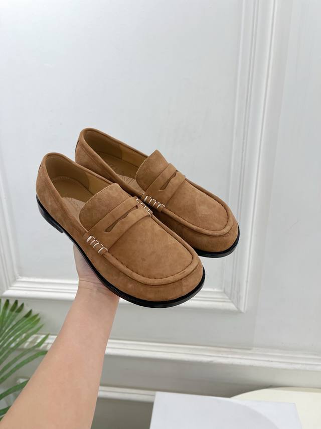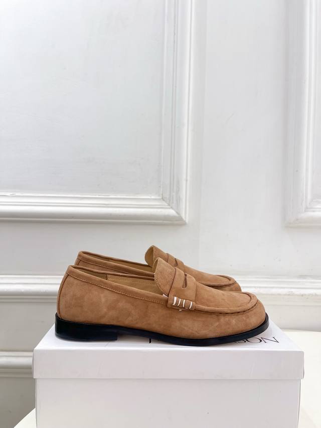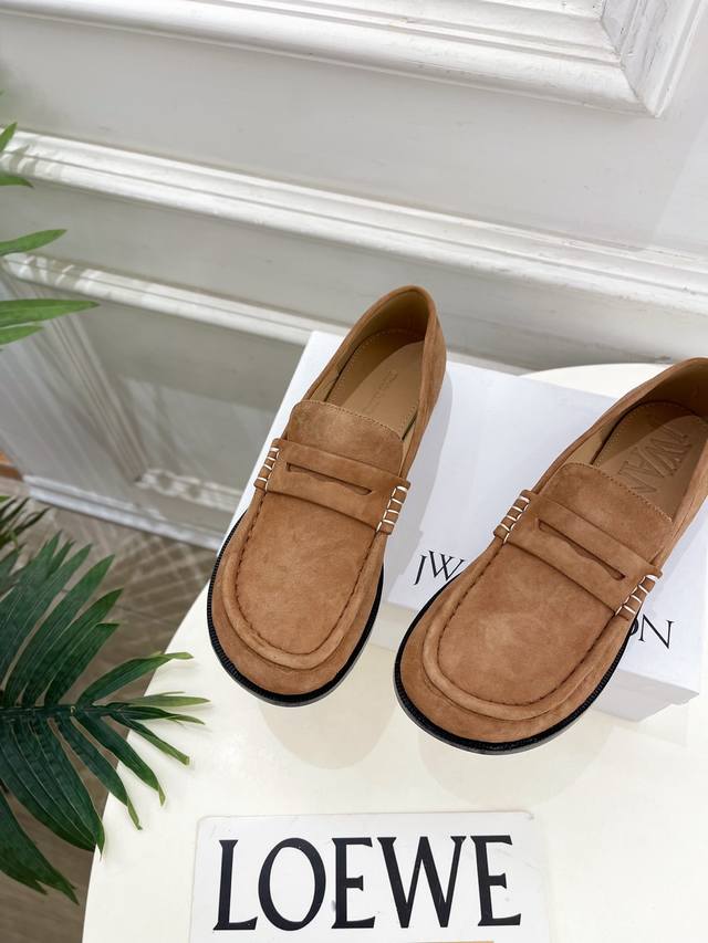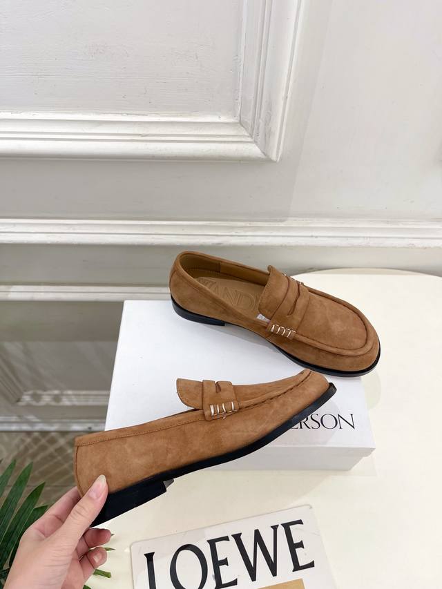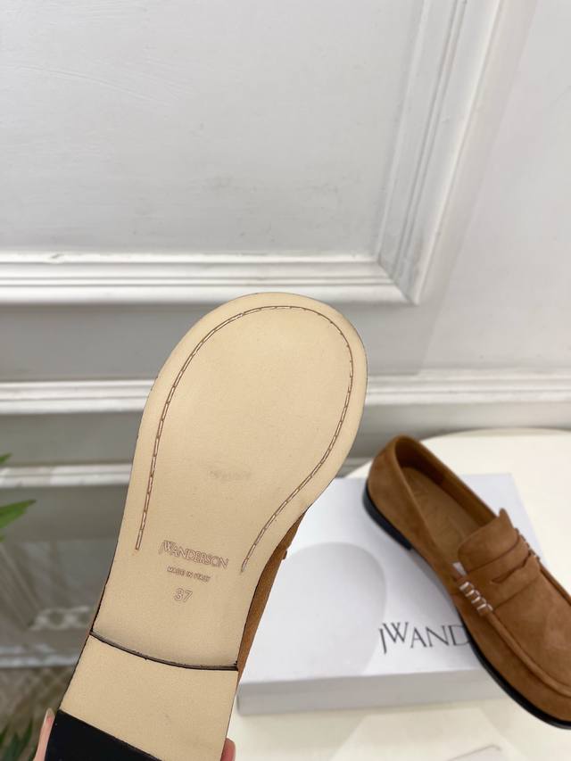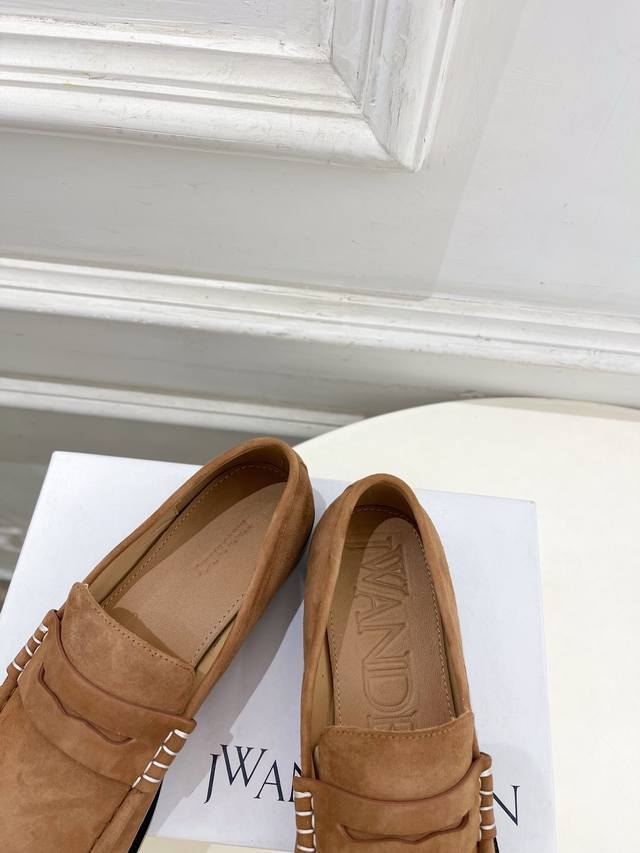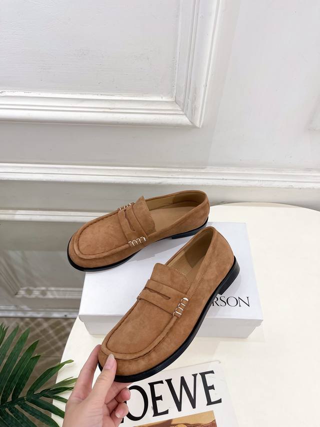 Jw Anderson 2025秋冬新品 经典复古简约乐福鞋 DDD 作为这两年最受欢迎的设计师牌,设计简单、细节巧妙、清新脱俗! 不想满大街撞款的可以看看这个品牌,比较小众却又是那么好搭配,Ins、小红书随处可见这个品牌的身影 !Bs原版一比一定制! DDD 鞋面:原版特定麂皮 牛皮 DDD 内里:进口小羊皮 DDD 大底:原版开模定制防滑大底 DDD 跟高:2Cm DDD 码数:35~39 40.41订做不退换 DDD 出厂价pp: DDD