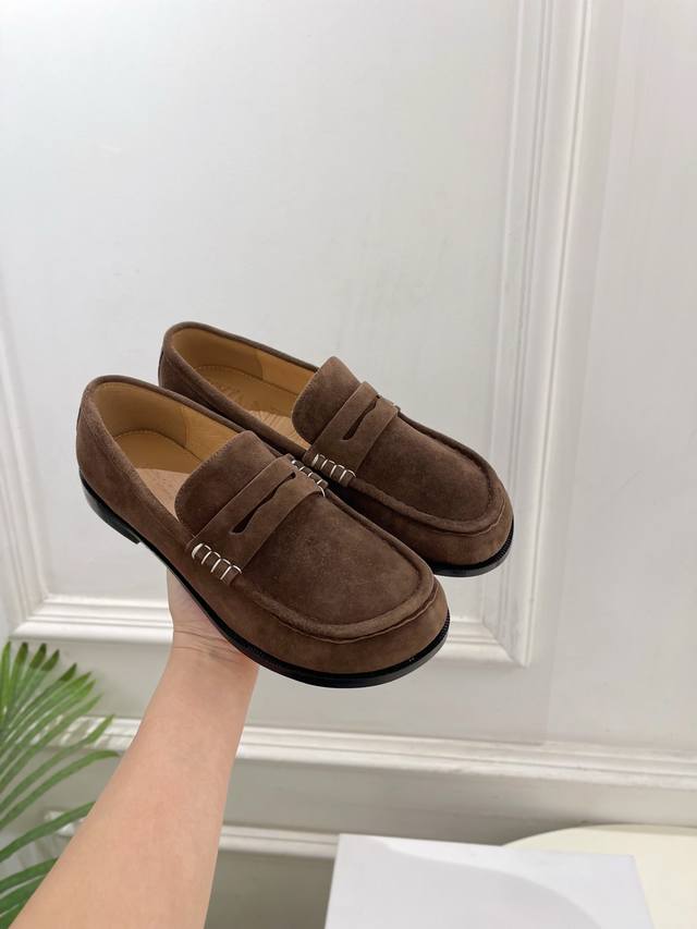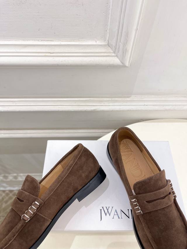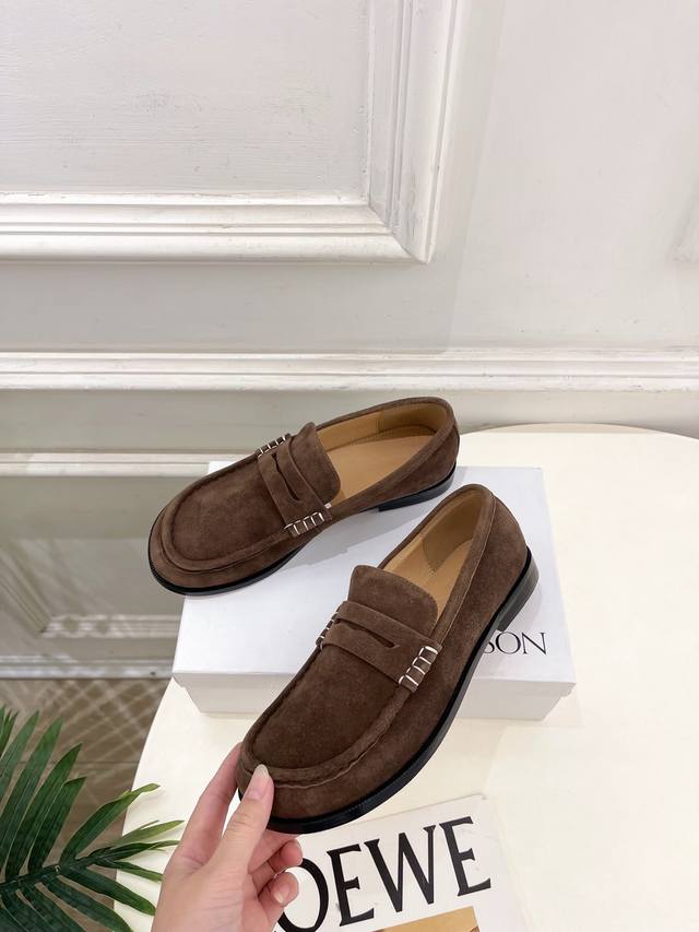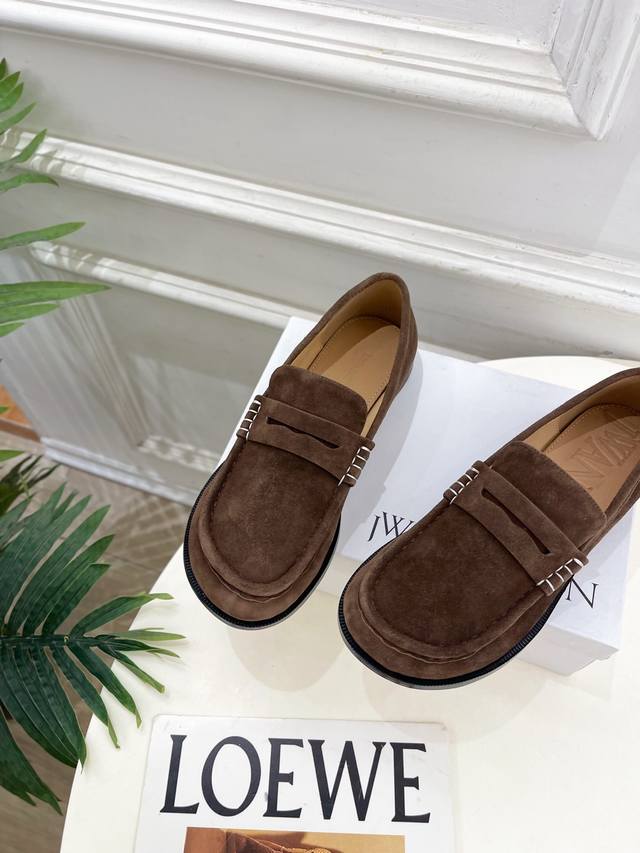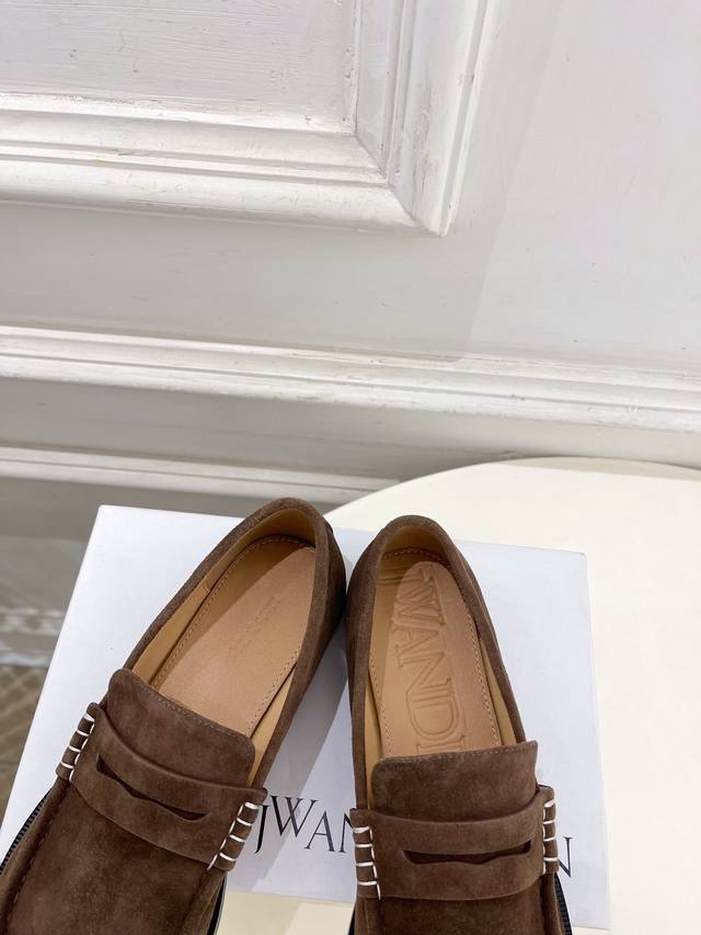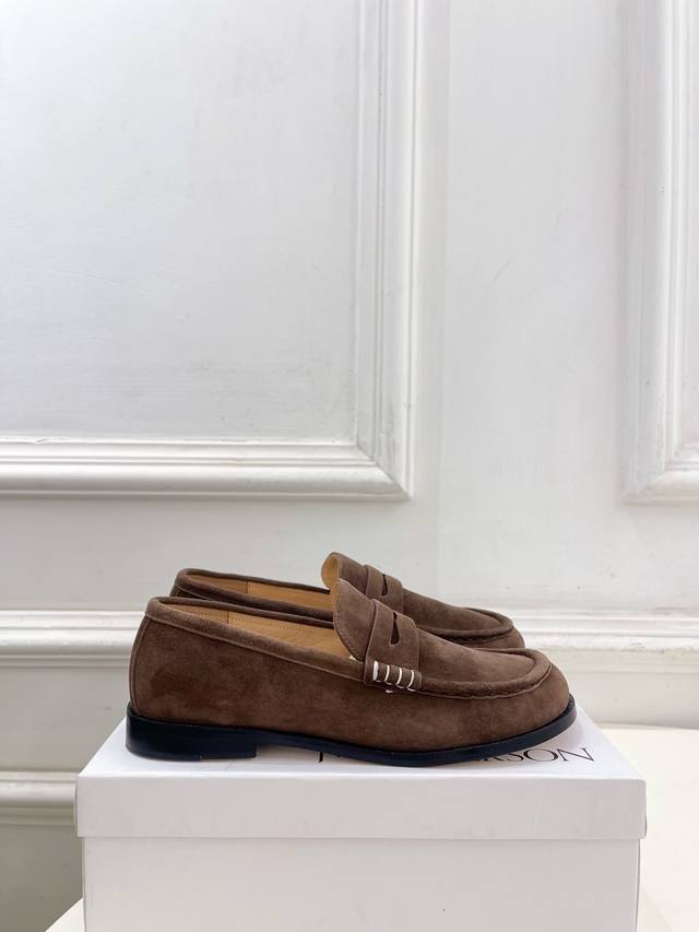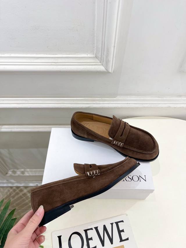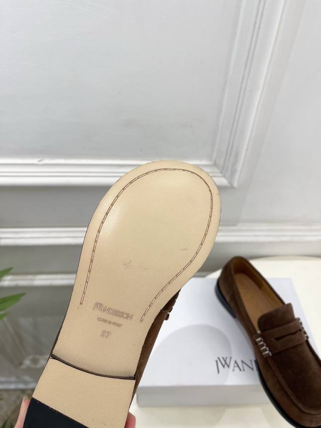 Jw Anderson 2025秋冬新品 经典复古简约乐福鞋 DDD 作为这两年最受欢迎的设计师牌,设计简单、细节巧妙、清新脱俗! 不想满大街撞款的可以看看这个品牌,比较小众却又是那么好搭配,Ins、小红书随处可见这个品牌的身影 !Bs原版一比一定制! DDD 鞋面:原版特定麂皮 牛皮 DDD 内里:进口小羊皮 DDD 大底:原版开模定制防滑大底 DDD 跟高:2Cm DDD 码数:35~39 40.41订做不退换 DDD 出厂价pp: DDD