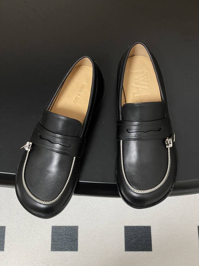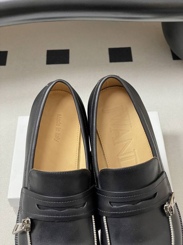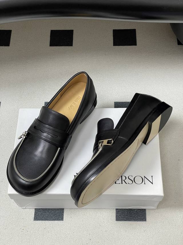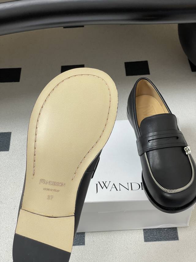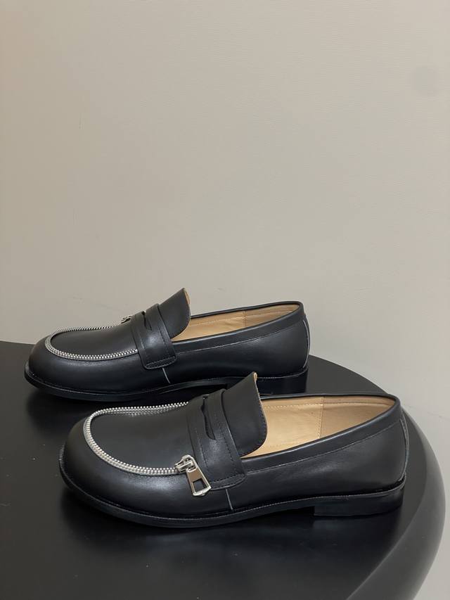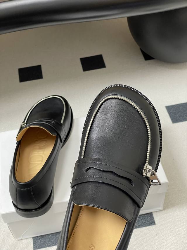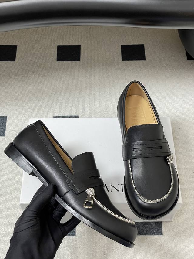 Jw Anderson 25Fw秋冬新款拉链小皮鞋大圆头平底乐福鞋 复古英伦风小皮鞋 老钱风单鞋 DDD 经典的乐福鞋鞋型,流畅的线条勾勒出简洁大方的外观,既适合日常休闲搭配,又能在一些稍微正式的场合穿着,展现出低调的优雅气质。鞋子侧面有精致的金属拉链条装饰,为整体简约的设计增添了一丝亮点,提升了时尚感与独特性,让这双乐福鞋在众多普通款式中脱颖而出。 DDD 鞋面:牛反绒 牛皮 DDD 内里垫脚:羊皮 DDD 鞋底:真皮沿条 开模大底 DDD 码数:35-39 40.41定做不退换 DDD