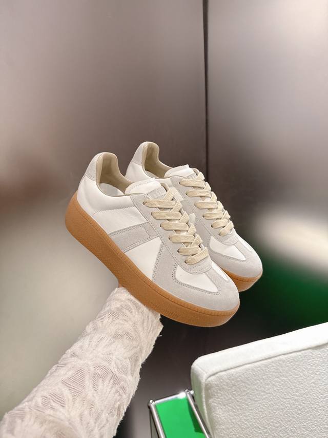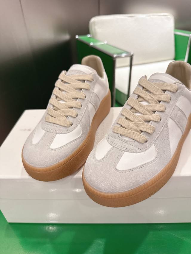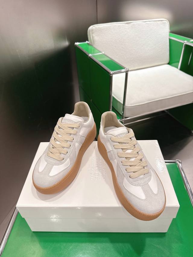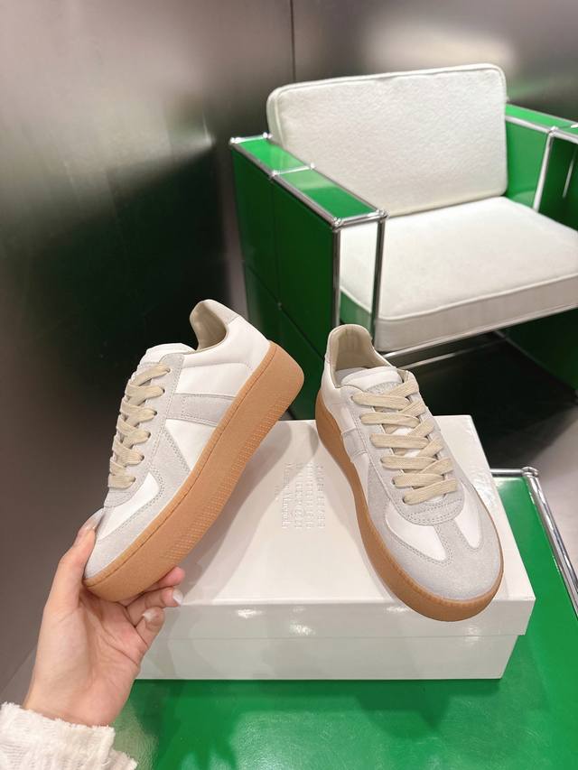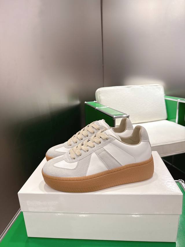 K012 Maisonmargiela 马吉拉厚底德训鞋 DDD 鬼才设计师品牌 一个轻奢品牌 这一款德国训练鞋延续了经典的T形真皮拼接设计 经过设计团队多次的精心改良,只为让您体验最原始的军旅味道~材质 特殊材料 布面 柔软细腻的特点与时尚潮流的布面相结合 使其既有超高的柔软舒适度 又同时保持不错的透气性能~舒适与质感并行 轻松驾驭四季穿着任何搭配 DDD 面料原版定制进口牛皮 内里进口柔软羊皮里 原版开模橡胶材质 DDD 底厚5Cm DDD 码数:35-40 40订做不退换 DDD