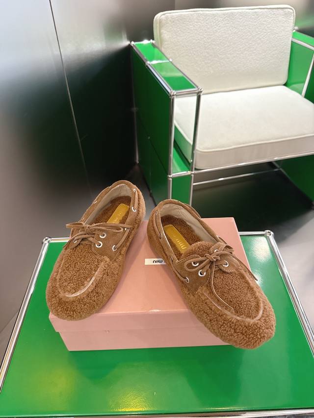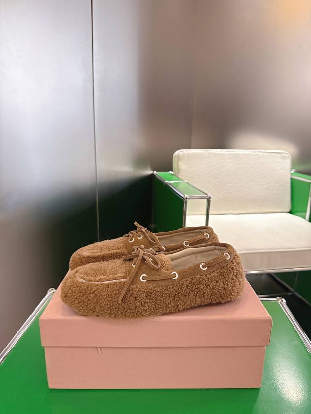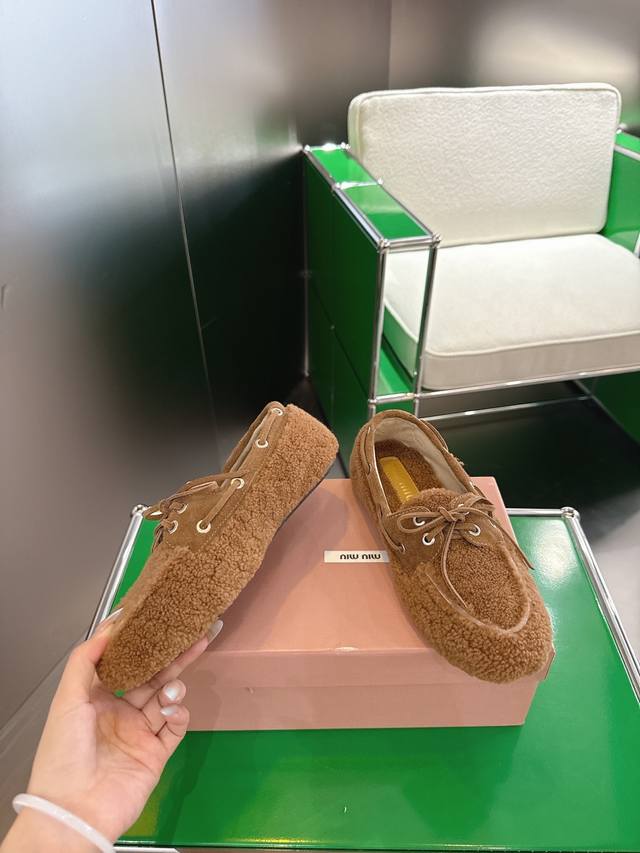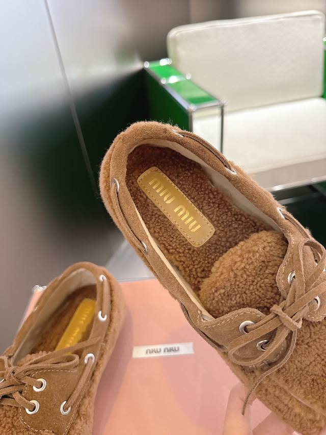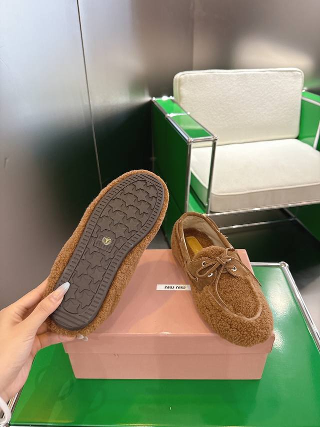 / K024 Miumiu 25年走秀新款毛毛乐福鞋 火爆来袭,常年穿搭必备单品,鞋面垫脚采用定制进口泰迪羊毛复古工艺,使整双鞋都透露着随性和洒脱,鞋面采用简约系带