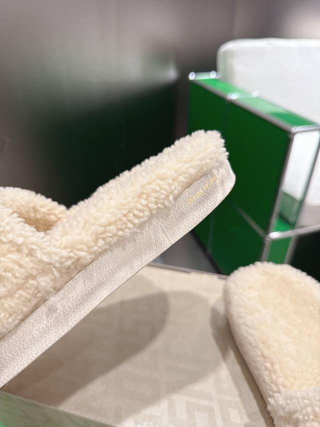 真皮大底 毛毛拖 顶板H型高品质毛毛拖鞋 hermess时尚潮流最新款泰迪羊毛...