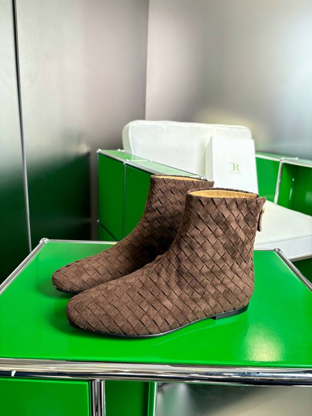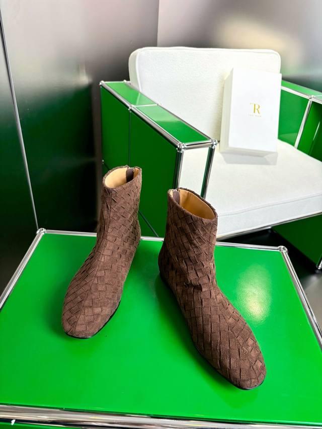 / K048The Row手工编织平底短靴 以极简之姿勾勒出静默的高级感 成为懂质感者的足下默契。 圆头设计是温柔的注脚 适合每种脚型 短靴筒利落包裹脚踝 线条从鞋