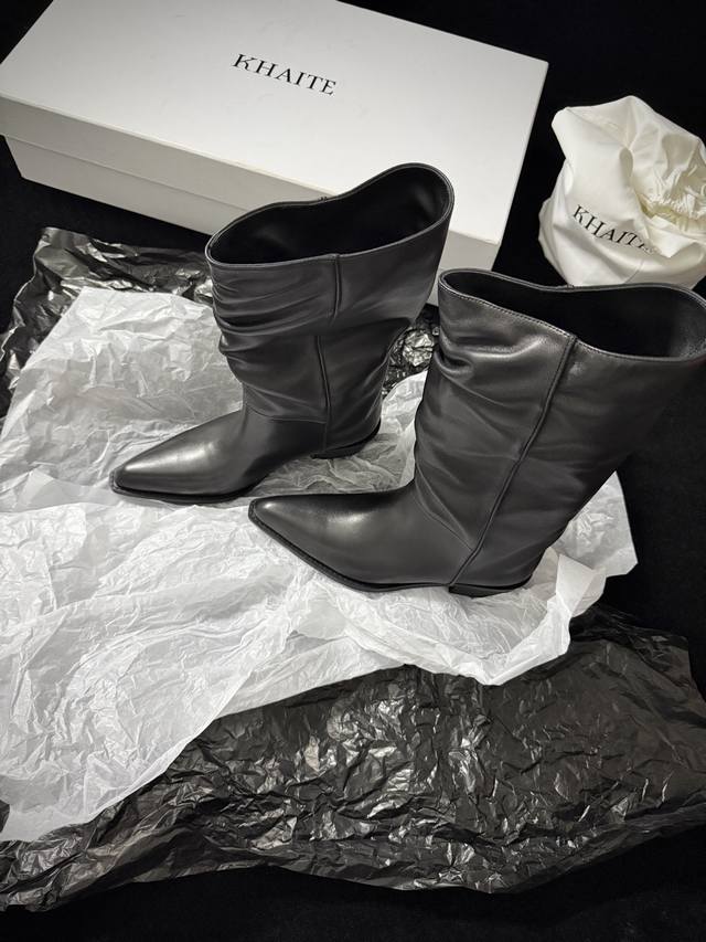 Khait* 新品靴 把“酷飒”焊在腿上 利落方跟+尖头 拿捏利落气场 褶皱靴筒自带松弛感 穿上直接解锁 走路带风 模式,了配裙装 裤装都炸场 时髦精衣柜刚需