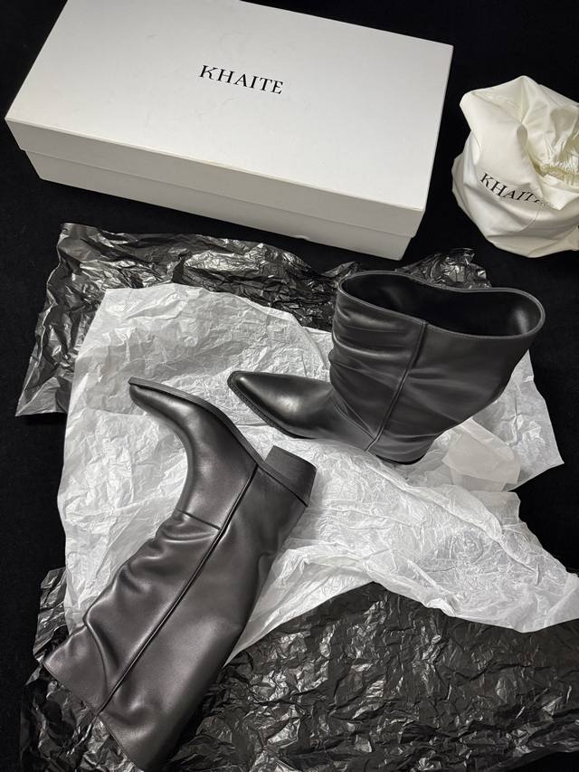 / Khait* 新品靴 把“酷飒”焊在腿上 利落方跟+尖头 拿捏利落气场 褶皱靴筒自带松弛感 穿上直接解锁 走路带风 模式,了配裙装 裤装都炸场 时髦精衣柜刚需