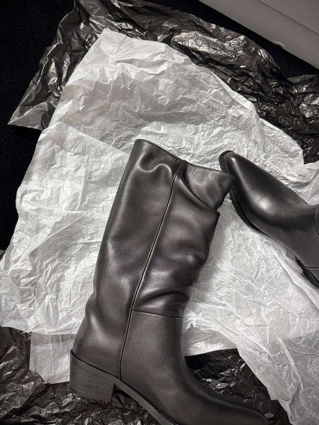 麦昆新款 25Ss极简皮质感高靴...
