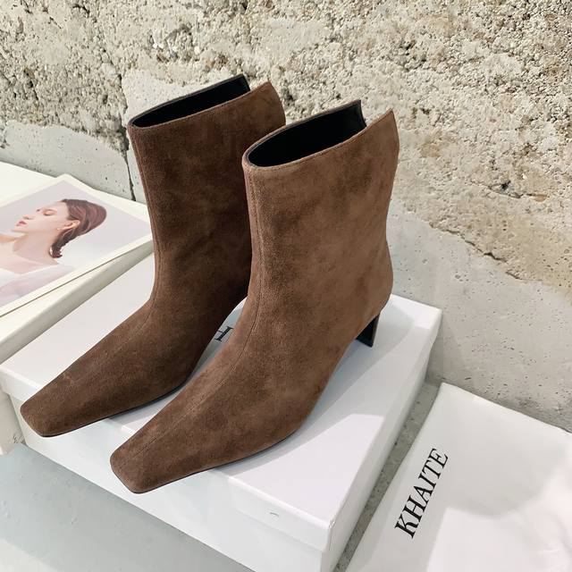 / Khaite 秋冬新款绝美神靴又A又飒不一定斩男,但一定斩女鞋型纤细又时髦,微微的堆积感超显腿细女神的百搭瘦腿靴,轻松穿出时尚大长腿原版1:1订制优质羊皮 羊京