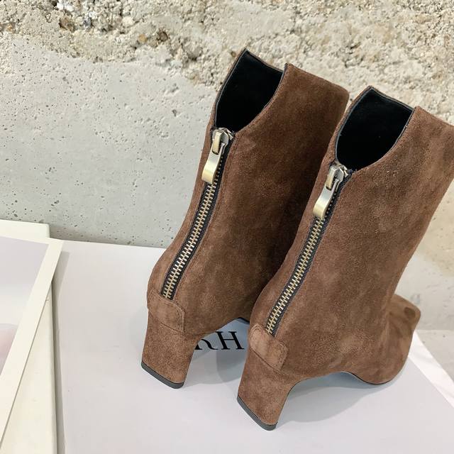 Khaite 秋冬新款绝美神靴又A又飒不一定斩男,但一定斩女鞋型纤细又时髦,微微的堆积感超显腿细女神的百搭瘦腿靴,轻松穿出时尚大长腿原版1:1订制优质羊皮 羊京