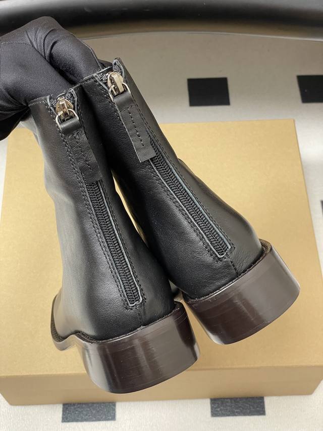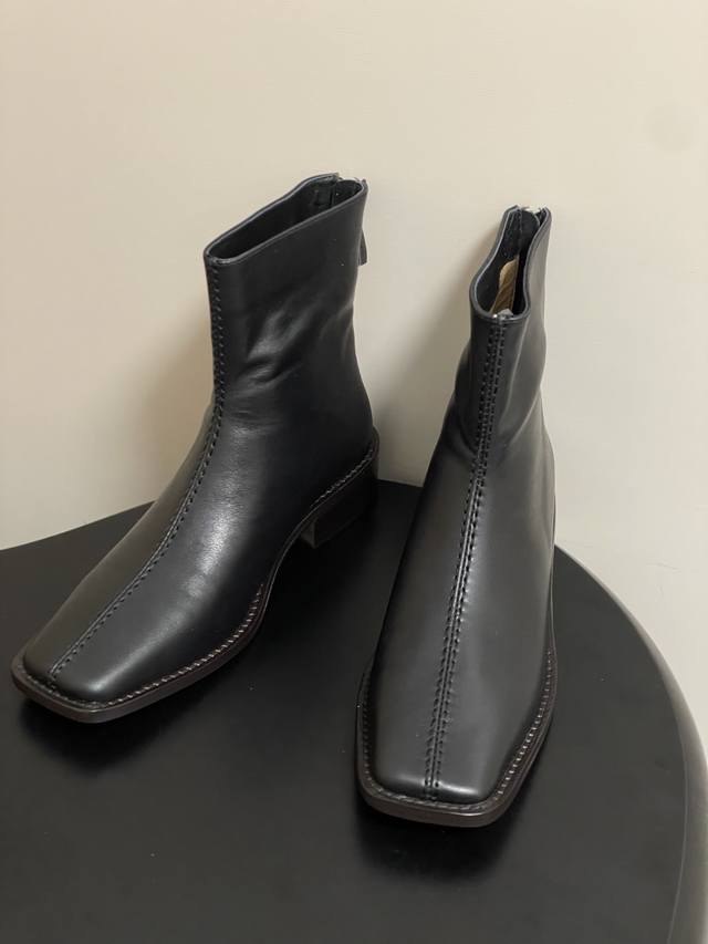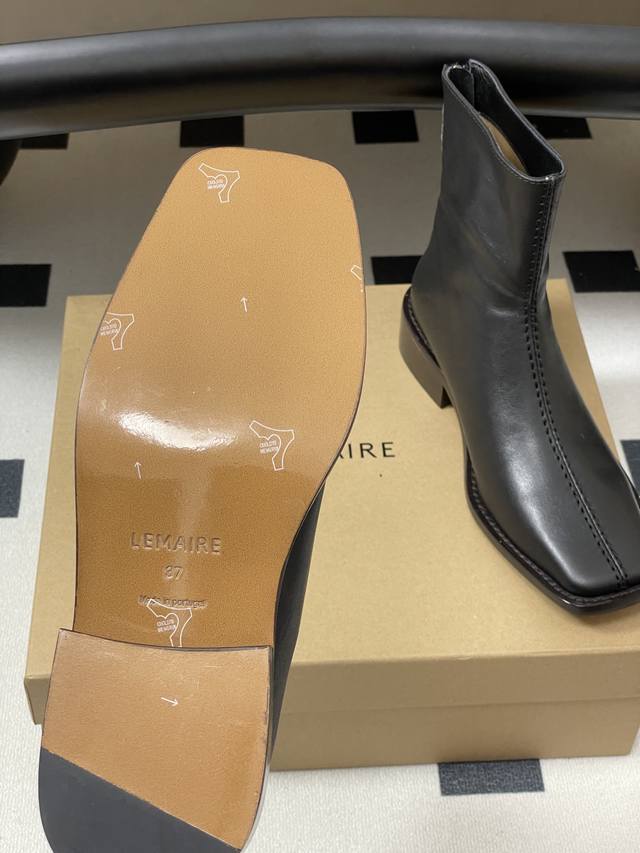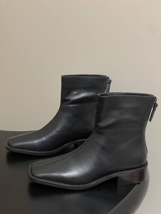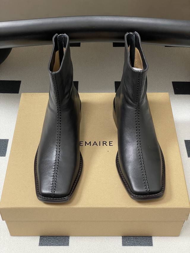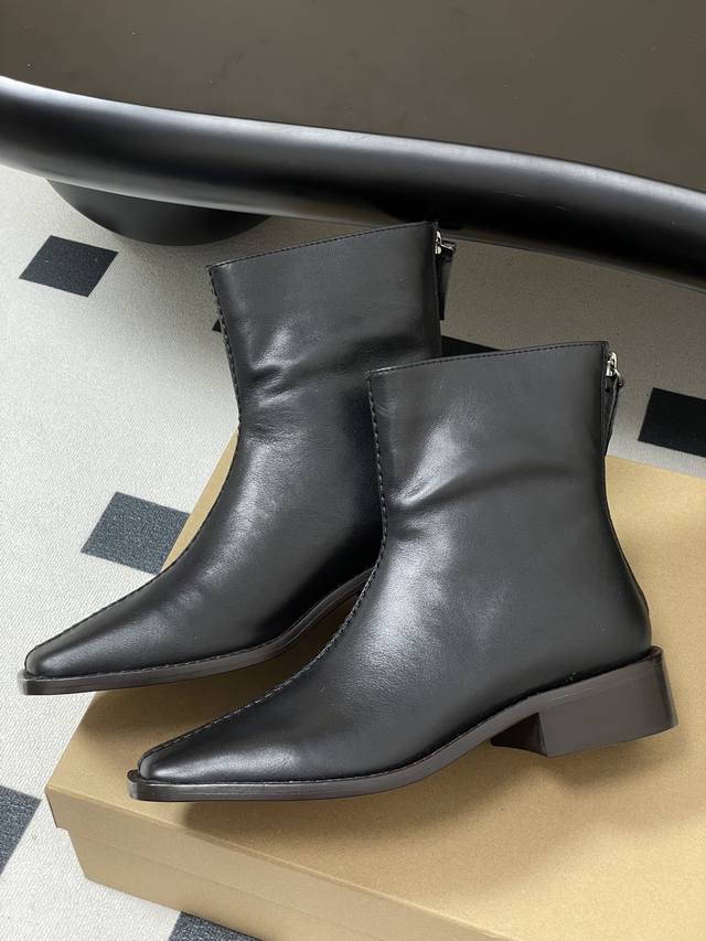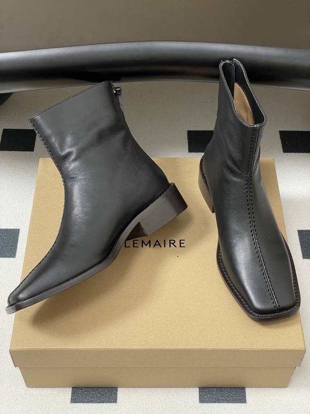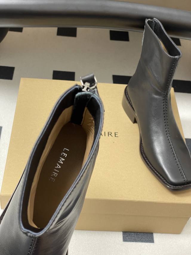 Lemaire 2025秋冬新款 方头简约高级短靴后拉链平跟一脚蹬踝靴