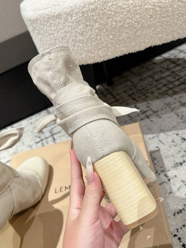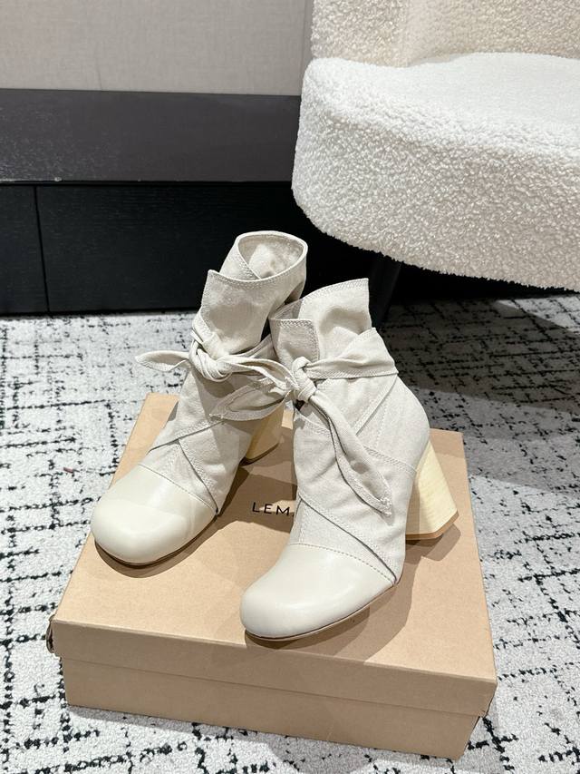 Lemaire 25 秋冬方头蝴蝶结高跟短靴