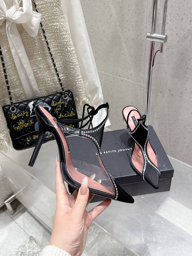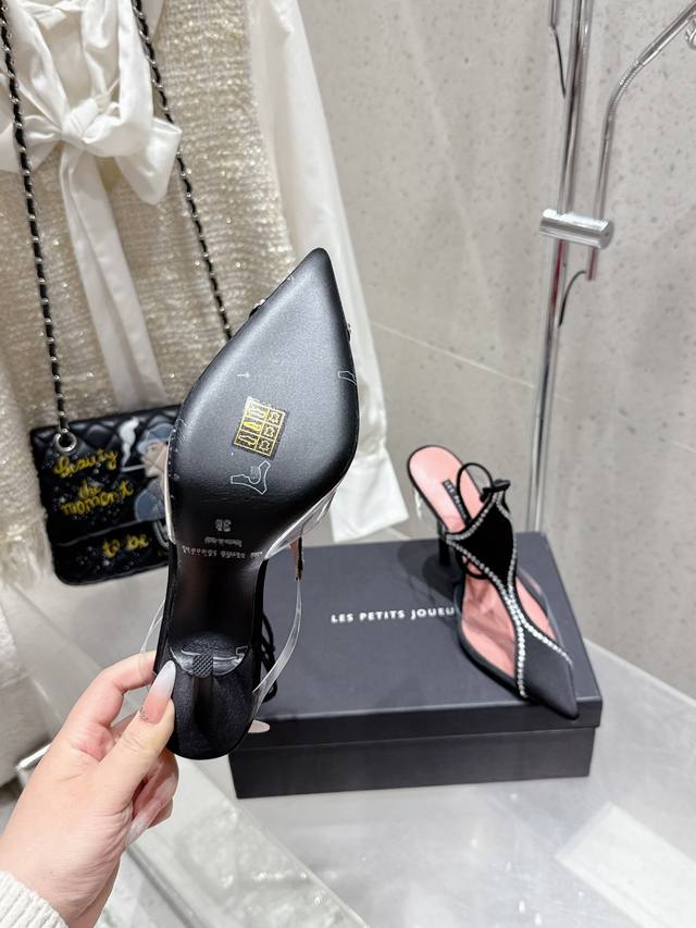 / les petits Joueurs 2025年春夏系列新品 性感靓丽首选单品 鞋面选用优质缎面烫钻+ 进口水染羊皮垫脚 真皮大底 跟高 10Cm size #