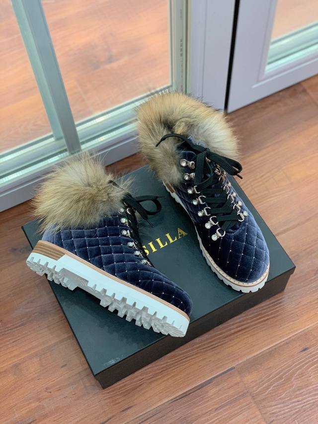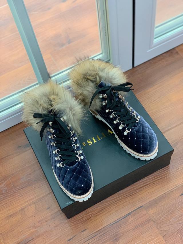 Lesilla 领口狐狸毛款。代购级。莱斯娜意大利知名品牌。他的设计灵感源自于使一个女人的形象真实而充满魅力。品牌以奢华风格著称整个设计充满古典和华丽的风格,有一种霸道的妖艳之美。鞋面羊皮、呢子、天鹅绒。金属柳钉,羊毛内里。领口狐狸毛。 码数:35-41 40、41定制不退换 批:呢子绒面 。皮面