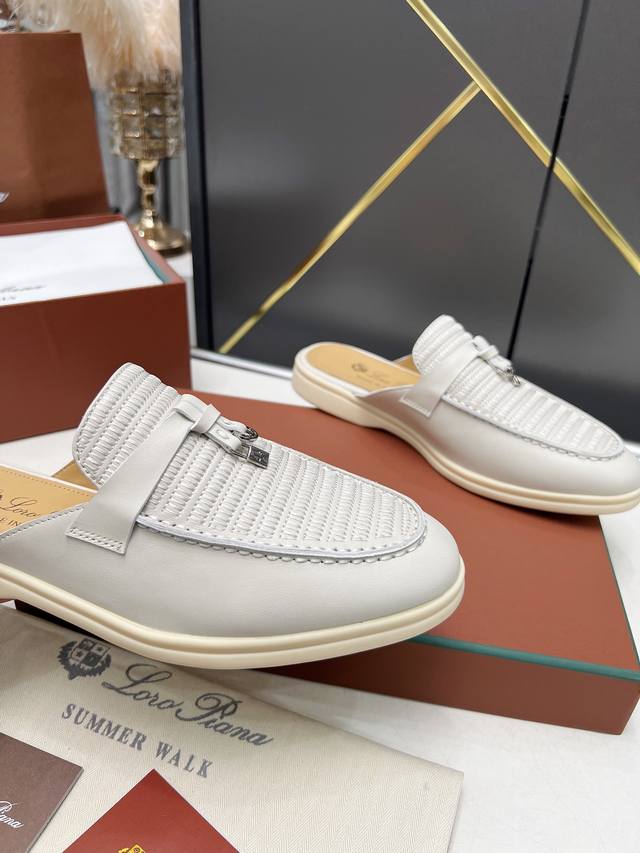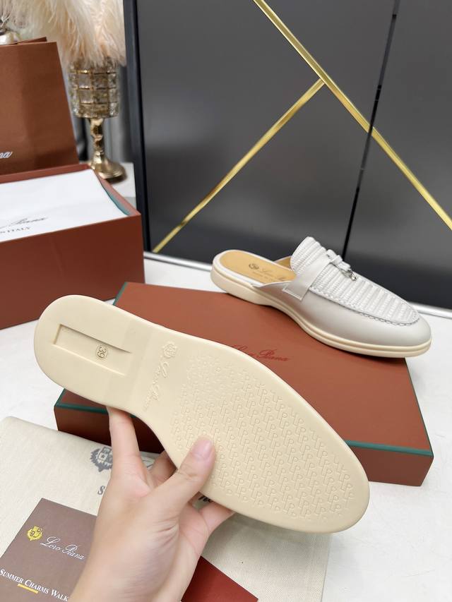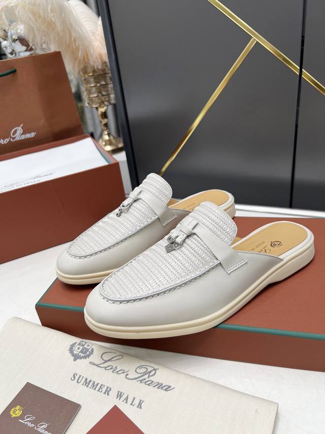 Loro piana 诺悠翩雅四季半拖电绣款。于1924年4月24日一手创立现有的Loro piana公司。家族经营至今已是第六代,为讲求品味及对质量有要求的顾客提供上等的优质商品 DDD 面料采用进口小羊绒,内里绵羊皮制成 手工缝制线,原版带署名字母生胶底,比传统橡胶底更轻巧舒适。 DDD Size:女款36-41 35 41 42定做不退换 DDD 订单可来图定制颜色,工厂p全年供货 DDD