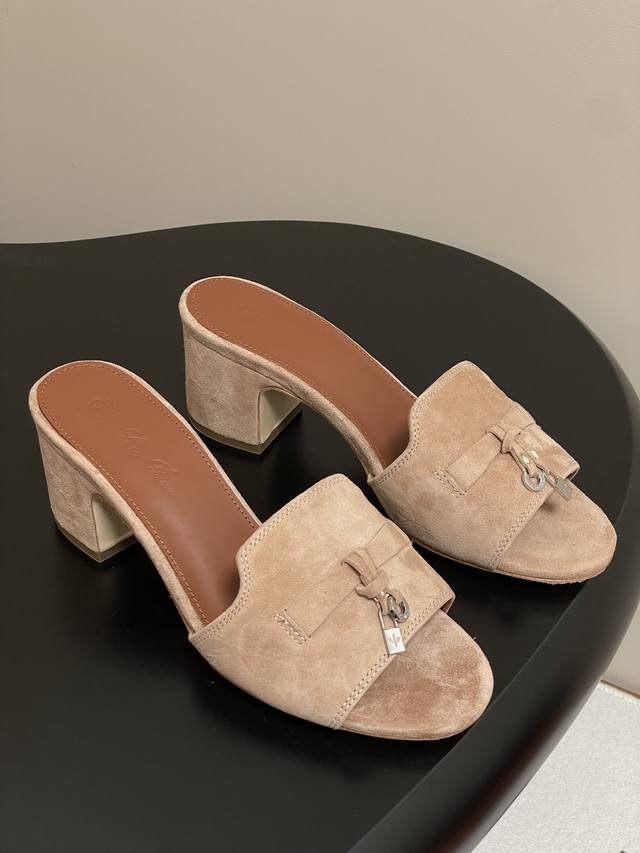 loro piana 诺悠翩雅 Lp 经典款平底拖鞋五金吊坠高跟凉拖鞋锁扣流苏绒面粗跟拖鞋