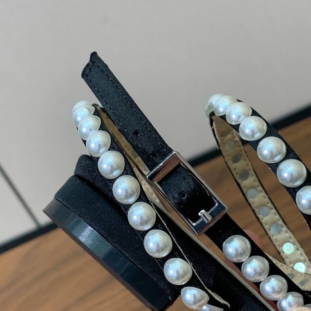 Mach&Mach 珍珠环带单鞋。可咸可甜,随意搭配,美到极致。鞋面真丝,羊皮内里及垫脚。真皮大底。码数:35-42 40、41、42定制不退换 批:
