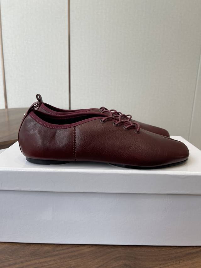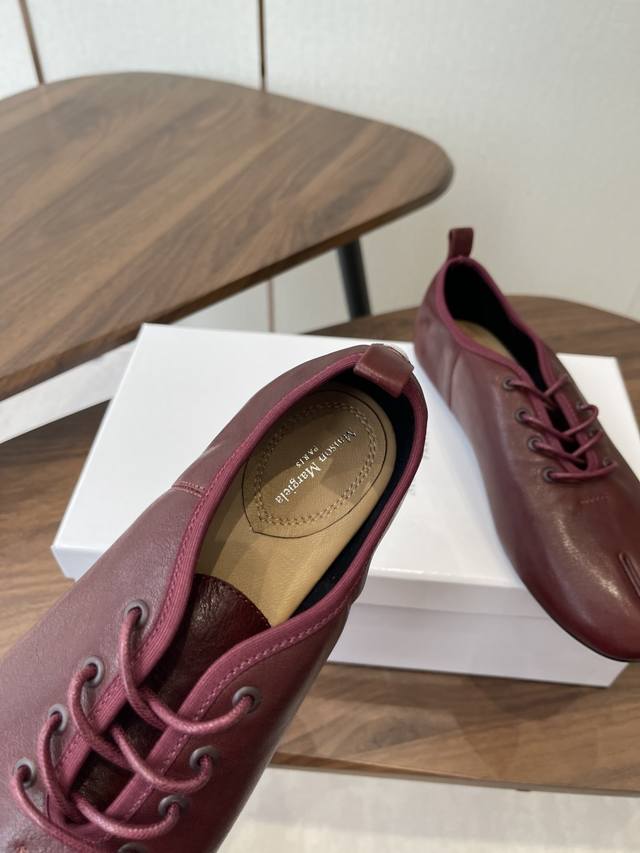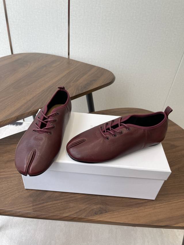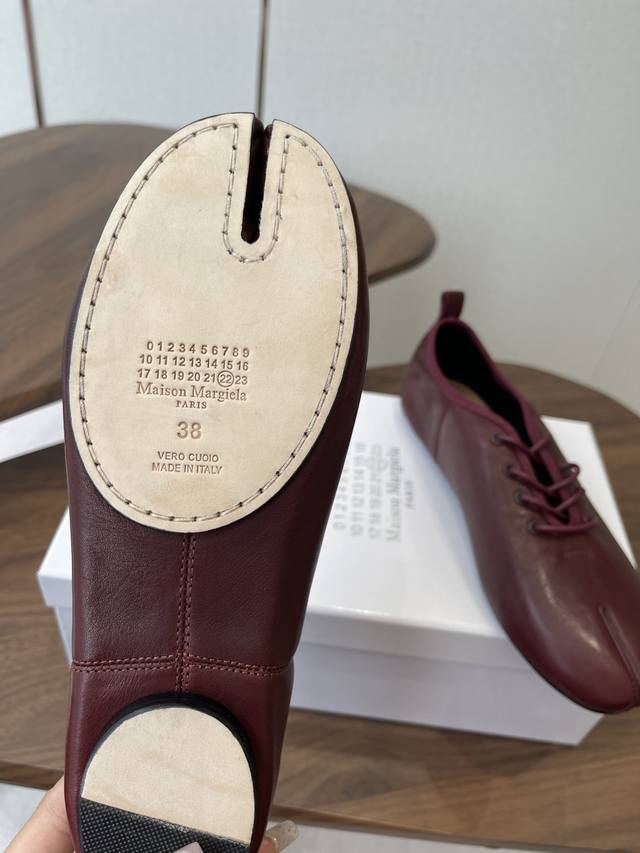 Maison Margiel马吉拉经典分趾鞋平底单鞋 DDD 鞋头是标志性分趾造型,搭配系带款式,自带先锋小众的辨识度,风格独特不撞款。鞋面是细腻皮革,部分款式有金属光泽或纹理质感,细节处显高级;鞋内有品牌标识,调性统一。 DDD 兼具极简与先锋感,能搭极简风西装、复古牛仔裤、小众设计感连衣裙,适配先锋、慵懒、轻熟等多种风格。平底鞋型,脚感舒适;鞋型贴合脚型,日常通勤或休闲场合都能穿。 DDD 鞋面:牛皮 羊皮 DDD 内里:双面绒 DDD 大底:真皮大底 DDD 增高:2Cm DDD Size :35-