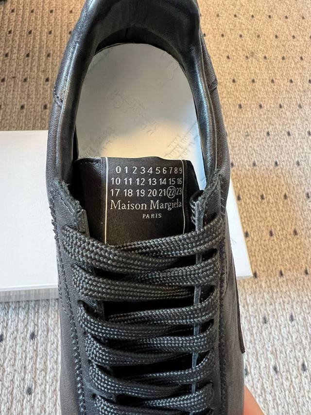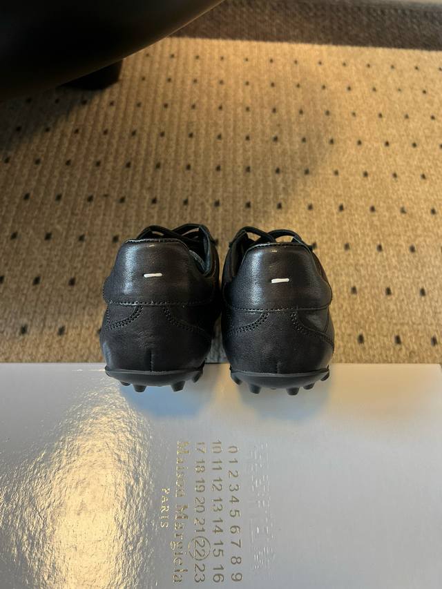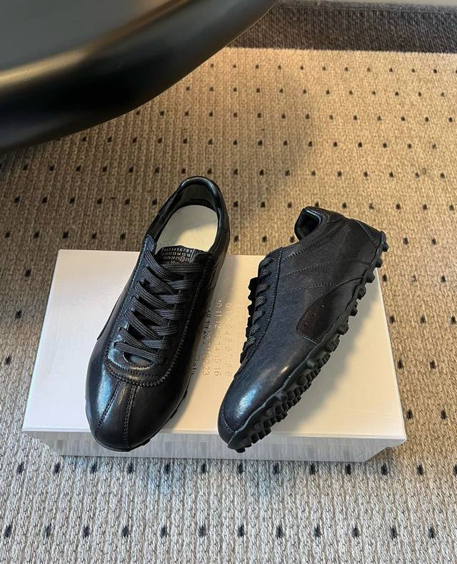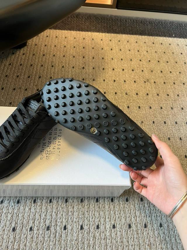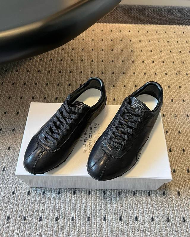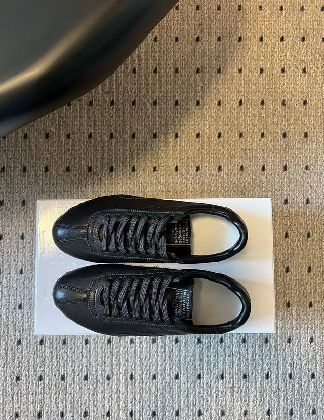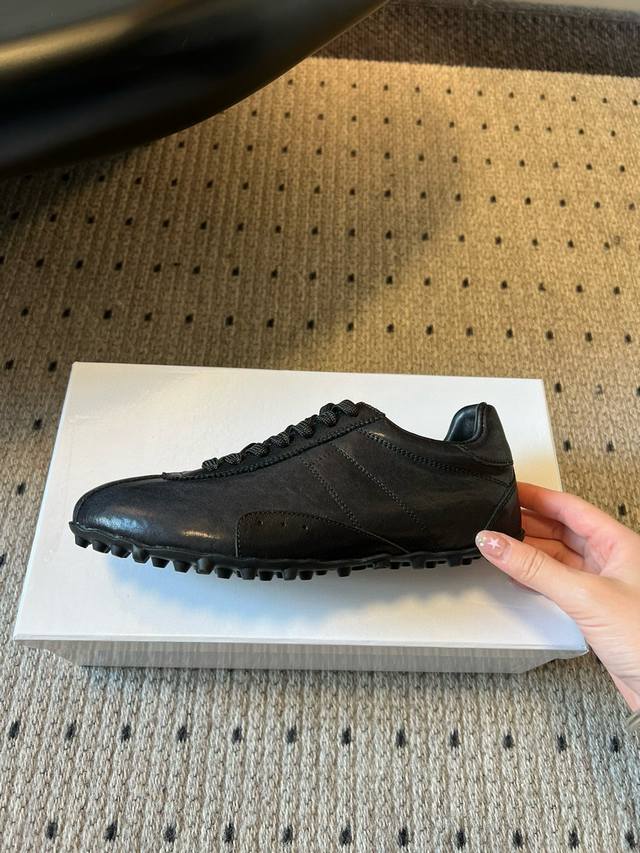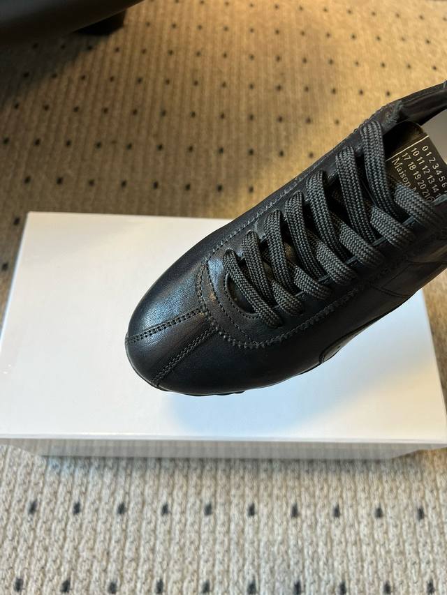 Maison Margiel* 25Aw复古皮革阿甘鞋 DDD 融合复古运动与先锋极简风,鞋型源自经典德训鞋轮廓,线条利落流畅,保留复古球鞋的简约结构,又通过品牌标志性的“做旧感”皮革处理,增添小众高级质感。 DDD 采用优质皮革鞋面,质感柔软且富有复古做旧细节;鞋带与鞋身色彩形成对比,强化视觉层次;鞋底带有轻微防滑纹路,兼顾复古外观与实用功能性。鞋内或鞋舌处的品牌标识,彰显Maison Margiela的先锋设计基因,低调却极具辨识度。 DDD 鞋面:牛皮 DDD 内里:牛皮 DDD 大底:原版开模大底