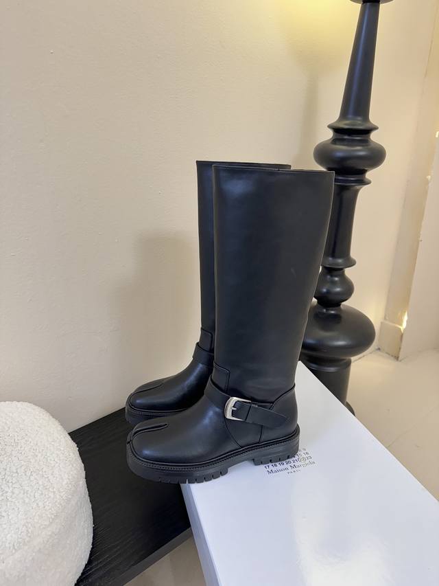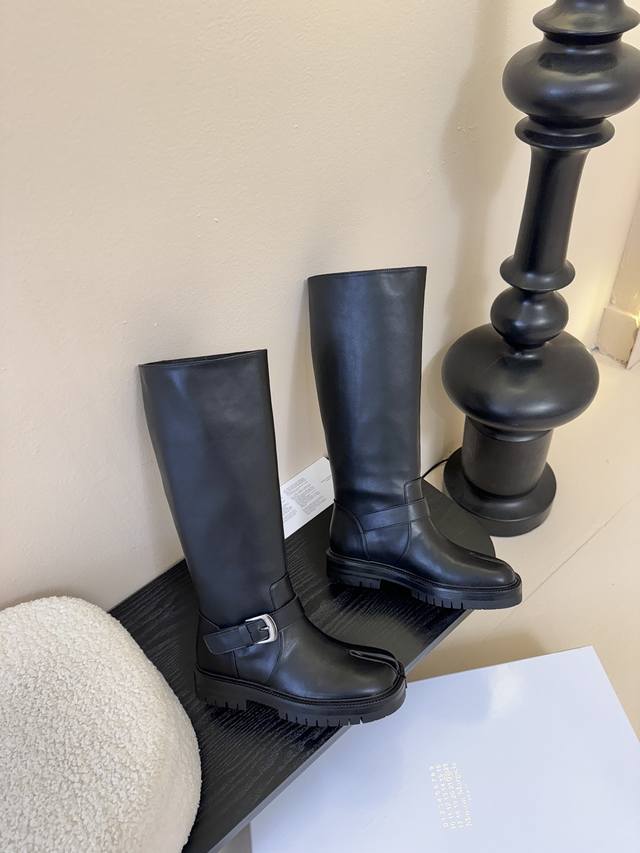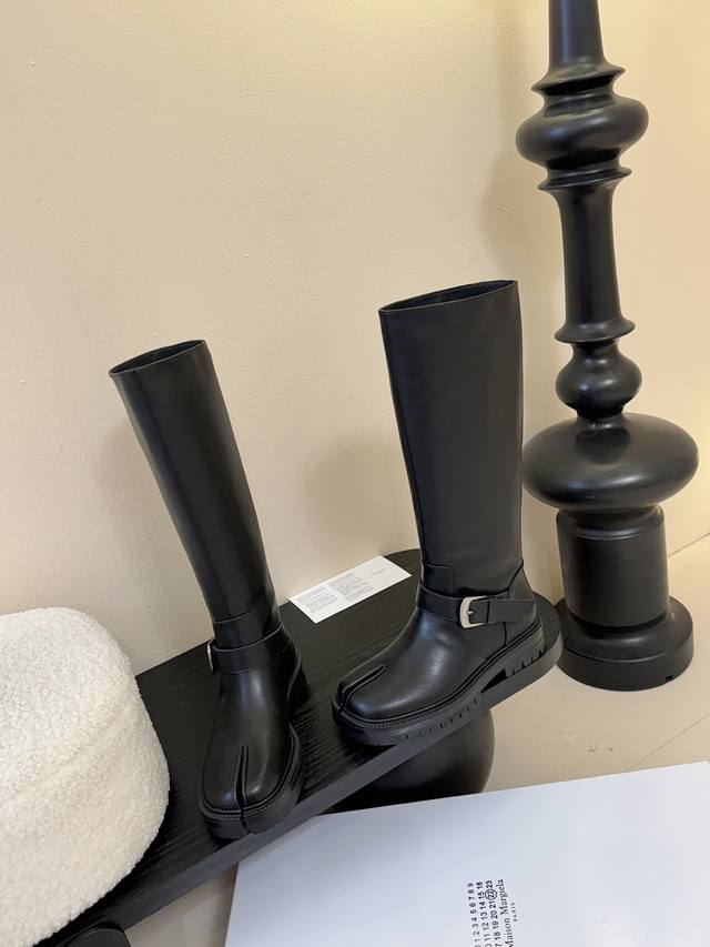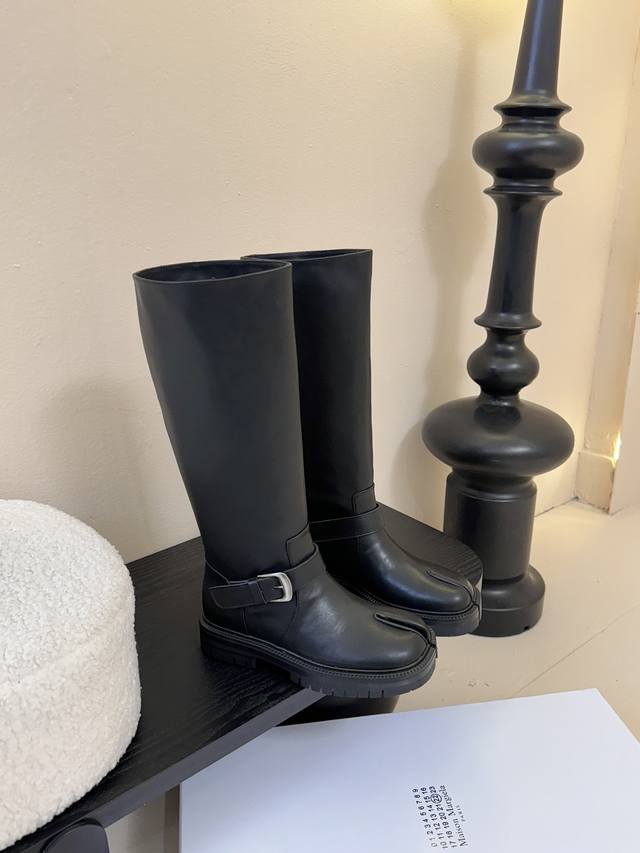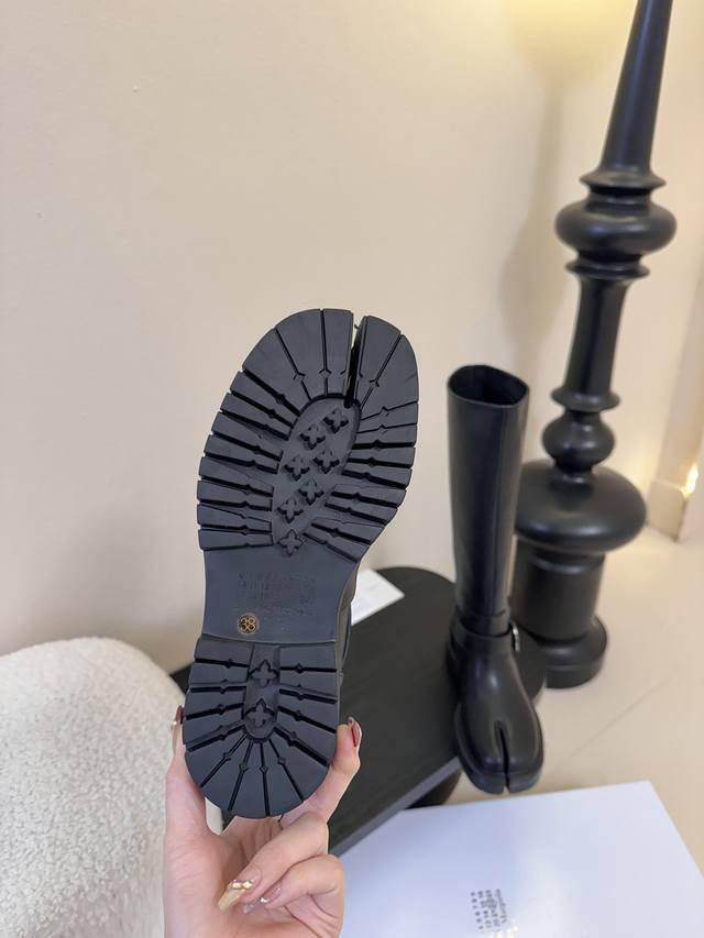 Maison Margiel*25Aw秋冬新款骑士分趾靴 DDD 鞋头采用分趾结构,复刻日式足袋的经典形态,极具辨识度,是先锋时尚的代表性元素。鞋面选用光泽感强的皮革材质,质感挺括;搭配金属扣带装饰,增添复古硬朗气质。 DDD 有长筒靴、短靴两种款式,长筒款修饰腿型,短靴利落干练;厚底设计兼具增高与舒适感,适配多种场景。可搭配黑色紧身裤 骑行裤,外搭Oversize牛仔外套,露出靴筒线条,打造率性不羁的街头感。 DDD 鞋面:羊皮 DDD 内里:牛皮 DDD 大底:成型大底 DDD Size:35-39