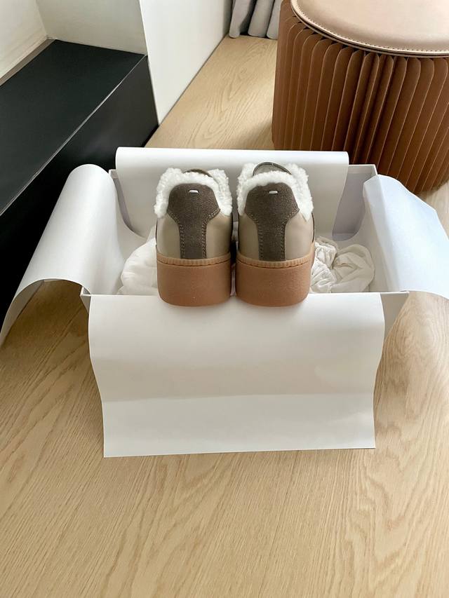 Maison Margiela 全新升级还原版本 Mm6情侣款厚底羊毛里德训鞋、马吉拉德训鞋 DDD 各大博都主有荐推的 永不褪色的阿甘训德鞋 绝对人手入必的德训白小鞋 DDD 原版开发 选料对色完美大货 DDD 越看单简细越节要做到差无别 DDD 原版定牛制皮 牛反绒 定染原正版确料皮颜色 内里全羊毛 底厚5Cm。 DDD 女35-40 40定做不退换 原版双布袋包装 DDD