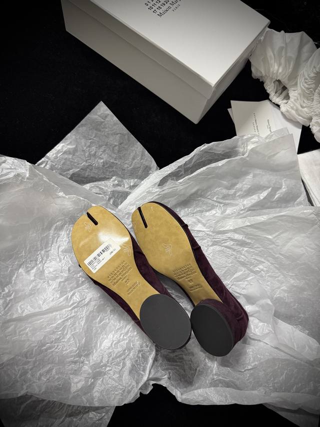 Maison Margiela* 新品 原版色来啦 芭蕾分趾单鞋 自带复古高级感~ 麂皮质感温柔又显贵 分趾设计个性吸睛 低粗跟走路舒适还能悄悄拉长腿部线条 搭配裙装 裤装都很绝 轻松解锁时髦新姿势 鞋面进口麂皮 内里进口牛皮 大底意大利A级真皮大底 跟高3.5Cm 35-39 40定