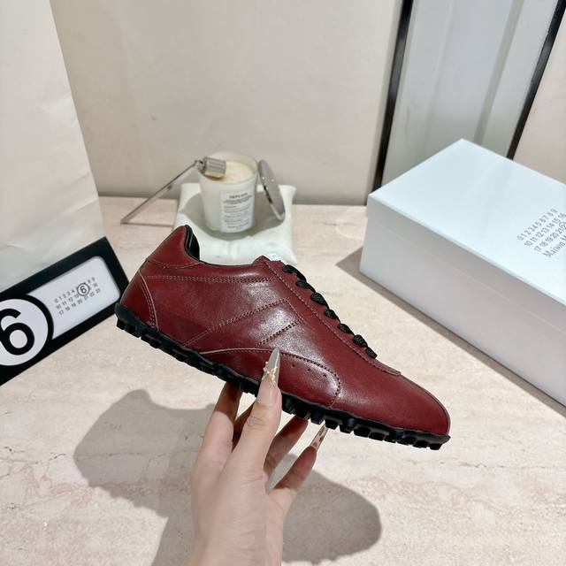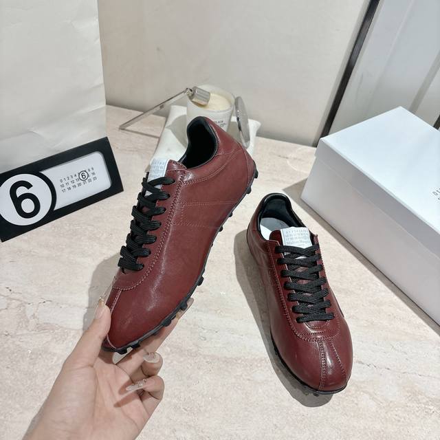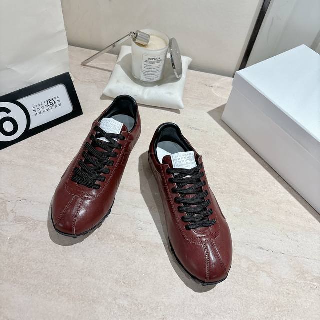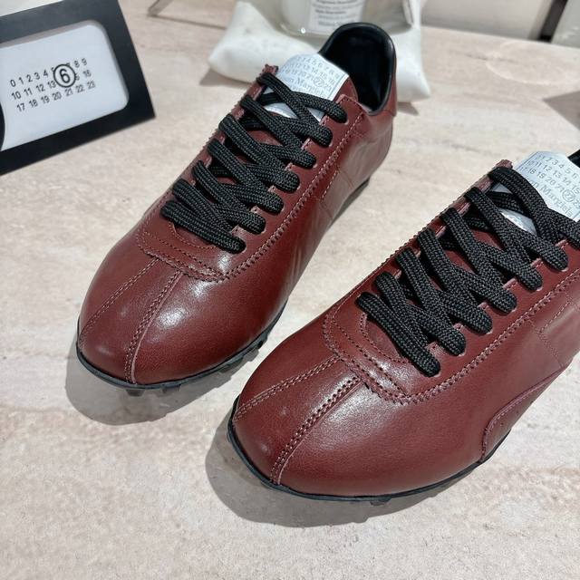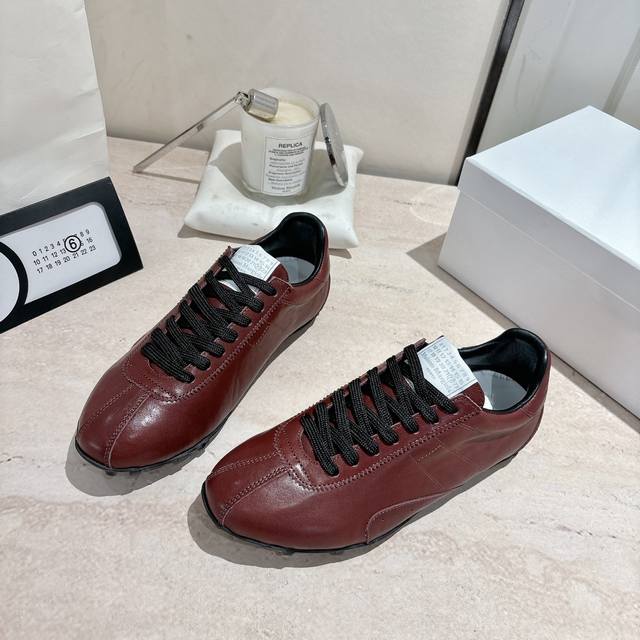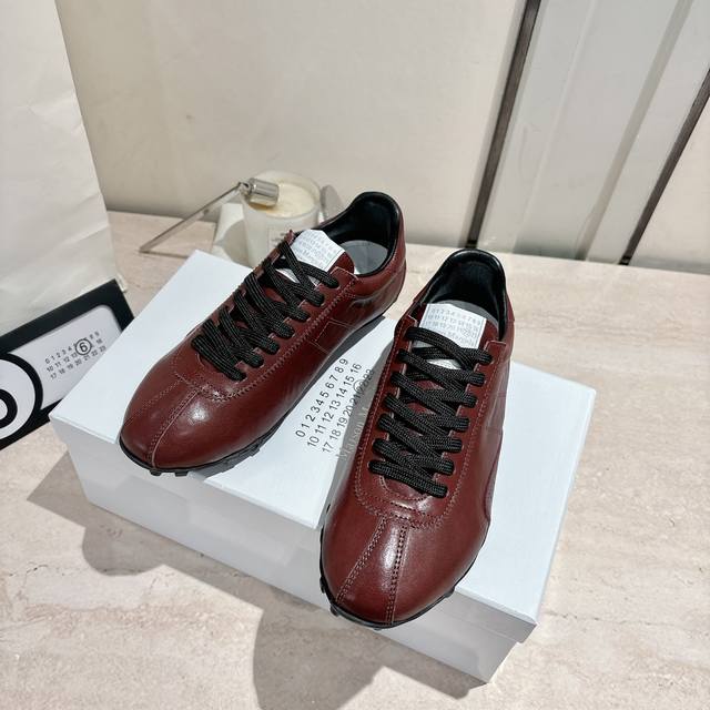 Maison Margiela 马吉拉2025秋冬系列情侣款阿甘鞋德训鞋 新款Sprinters运动鞋轮廓采用做旧植柔牛皮制成,灵感来源于复古跑鞋。通过做旧、缝