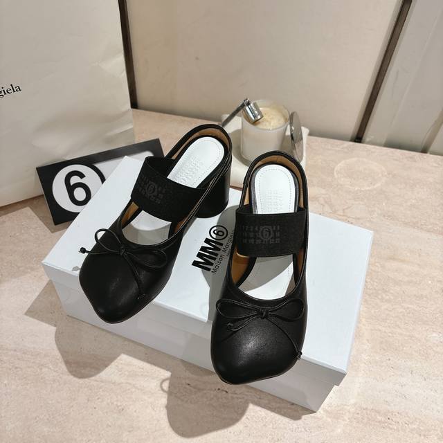 Maison Marginal* Mm6粗跟苹果头芭蕾舞鞋2025秋冬 马吉拉设计师太有才了 采用粗跟作为设计元素打造鞋品 单鞋干练精致 半拖搭配短裙 性感个性 面料牛皮 内里牛皮 原版开模鞋跟 意大利进口真皮大底 鞋跟: 7Cm 码数:35-40 40订做不退不换 出厂价Pp: