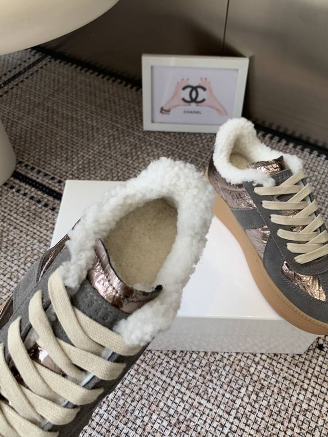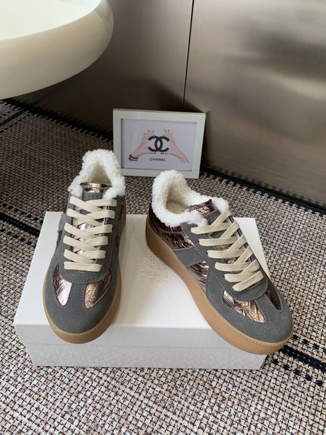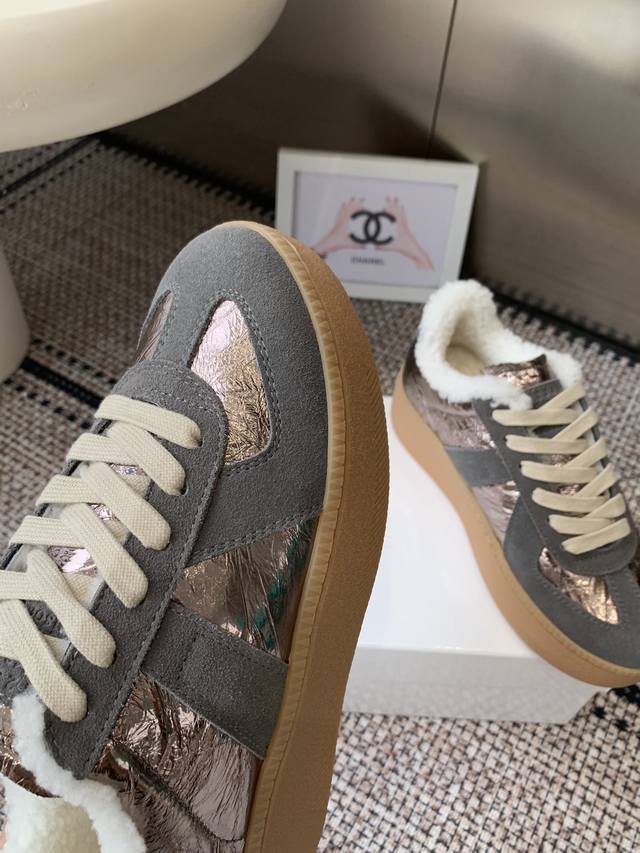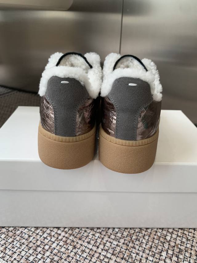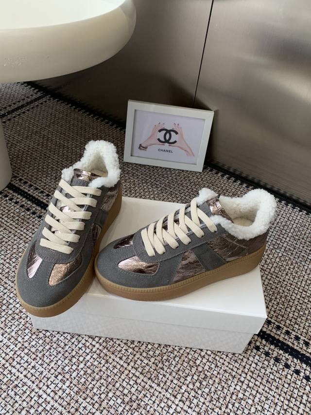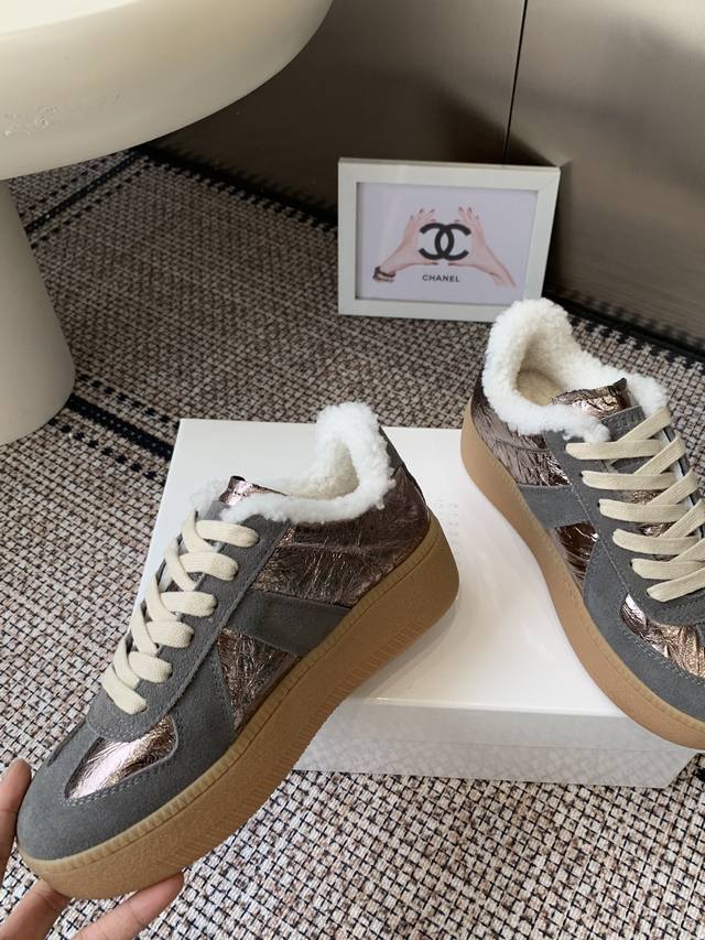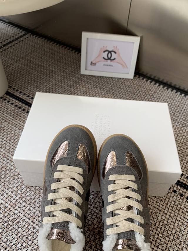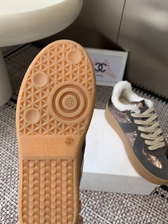 Maisonmargiela Mm6 马吉拉 厚底 加绒 德训鞋 DDD 原版购入开发 做货 鬼才设计师品牌 一个轻奢品牌 这一款德国训练鞋延续了经典的T形真皮拼接设计 经过设计团队多次的精心改良,只为让您体验最原始的军旅味道~材质 特殊材料 布面 柔软细腻的特点与时尚潮流的布面相结合 使其既有超高的柔软舒适度 又同时保持不错的透气性能~舒适与质感并行 轻松驾驭四季穿着任何搭配 DDD 面料原版定制进口牛皮 内里进口柔软羊皮里 原版开模橡胶材质 DDD 底厚5Cm DDD 码数:35-40 40订做不退换
