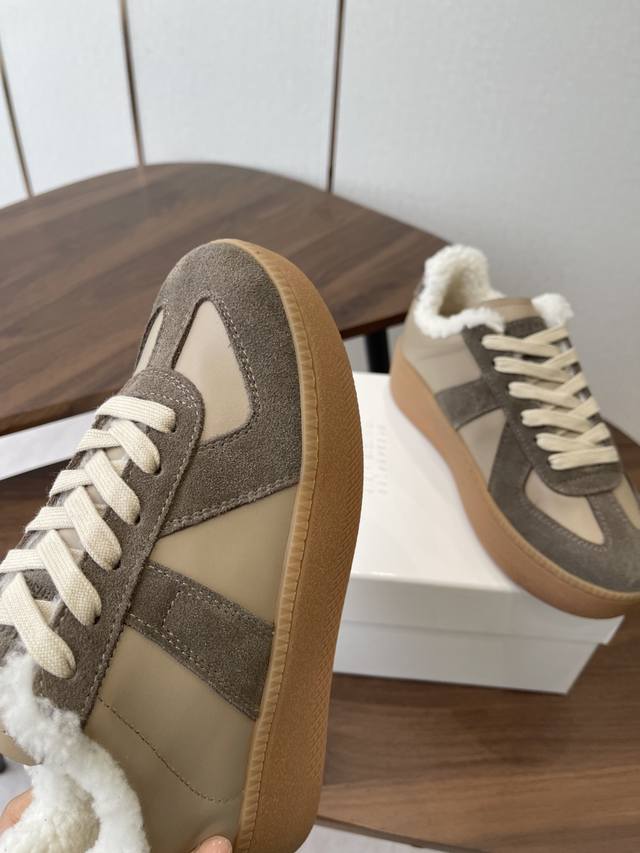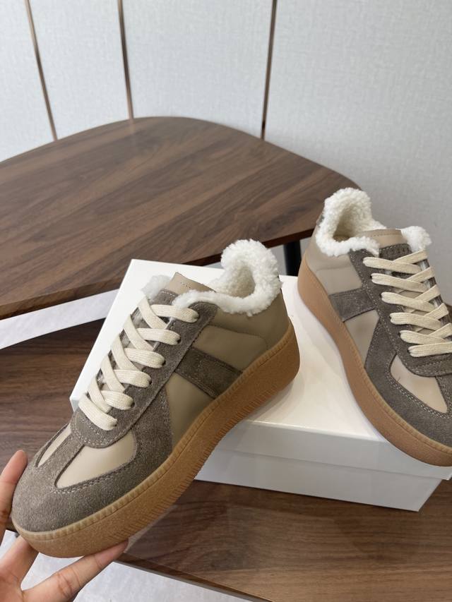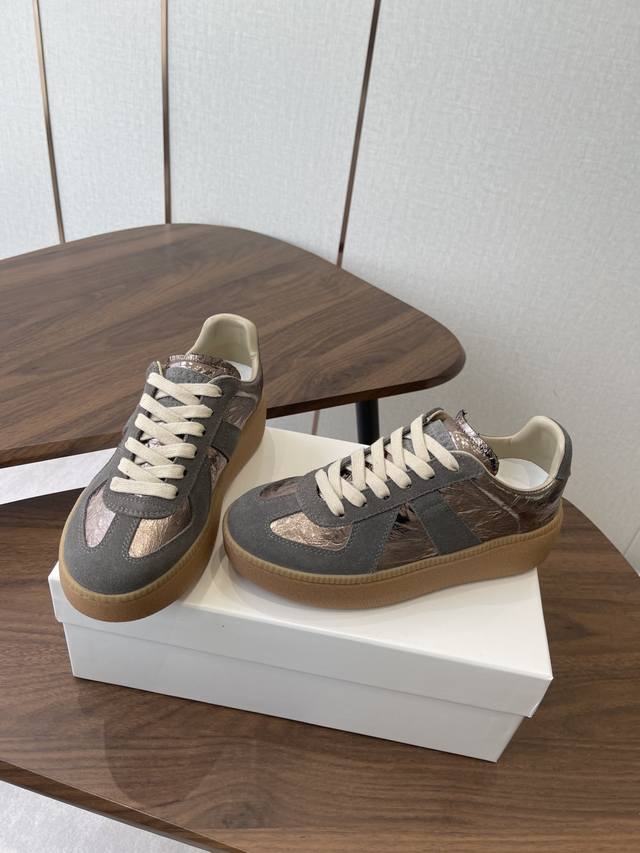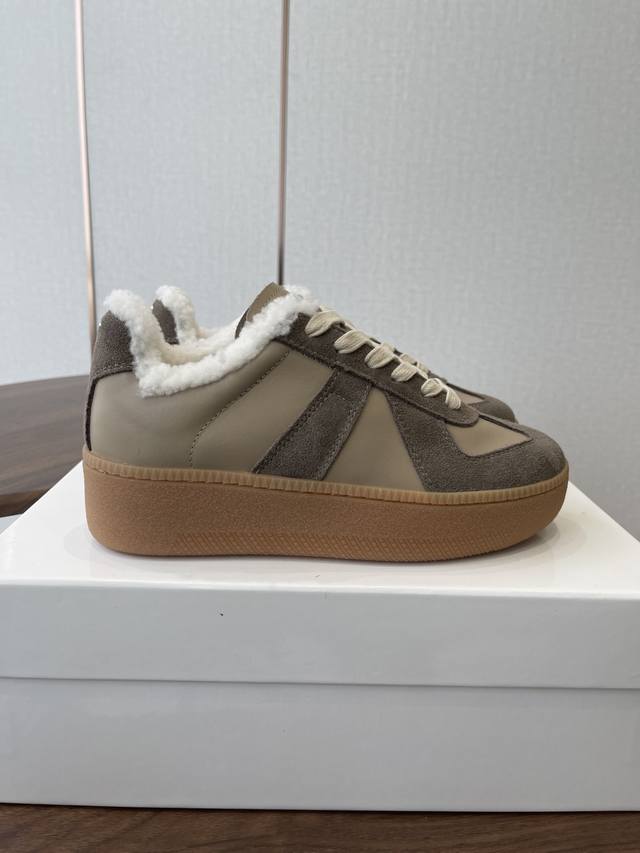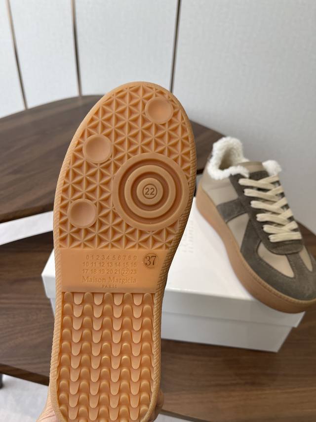Maisonmargiela Mm6 马吉拉 厚底 德训鞋 休闲 运动鞋 DDD 原版购入开发 做货 鬼才设计师品牌,一个轻奢品牌 这一款德国训练鞋延续了经典的T形真皮拼接设计,经过设计团队多次的精心改良,只为让您体验最原始的军旅味道~材质:特殊材料 布面,柔软细腻的特点与时尚潮流的布面相结合,使其既有超高的柔软舒适度,又同时保持不错的透气性能~舒适与质感并行,轻松驾驭四季穿着任何搭配 DDD 面料:原版定制进口牛皮 内里:进口柔软羊毛 里 大底:原版开模橡胶材质 DDD 底厚:5Cm DDD Size: