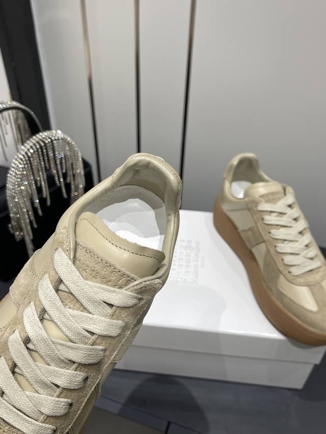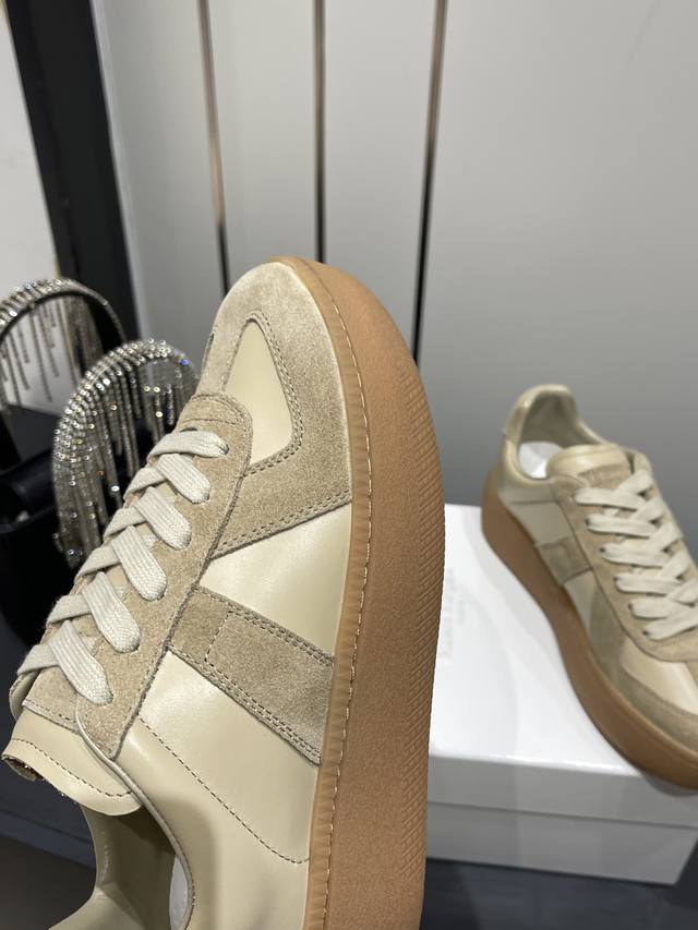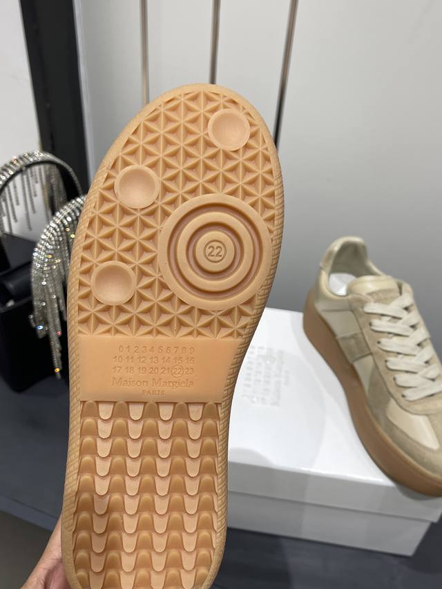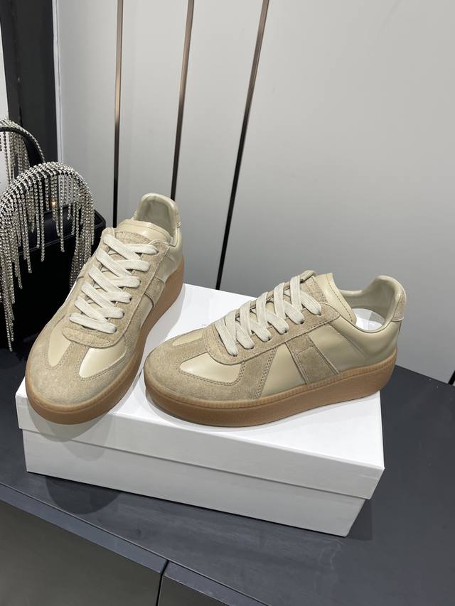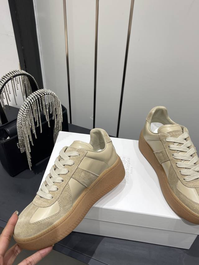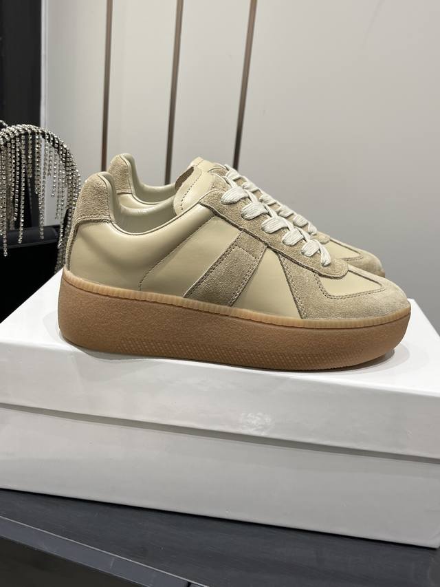 Maisonmargiela Mm6 马吉拉 厚底 德训鞋 原版购入开发 做货 鬼才设计师品牌 一个轻奢品牌 这一款德国训练鞋延续了经典的T形真皮拼接设计 经过设计团队多次的精心改良,只为让您体验最原始的军旅味道~材质 特殊材料 布面 柔软细腻的特点与时尚潮流的布面相结合 使其既有超高的柔软舒适度 又同时保持不错的透气性能~舒适与质感并行 轻松驾驭四季穿着任何搭配 面料原版定制进口牛皮 内里进口柔软羊皮里 原版开模橡胶材质 底厚5Cm 码数:35-40 40订做