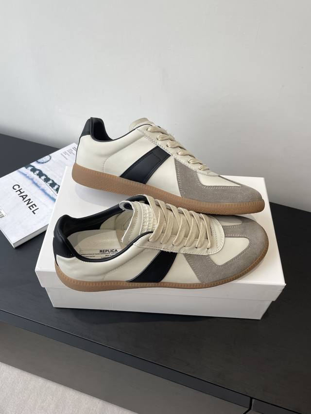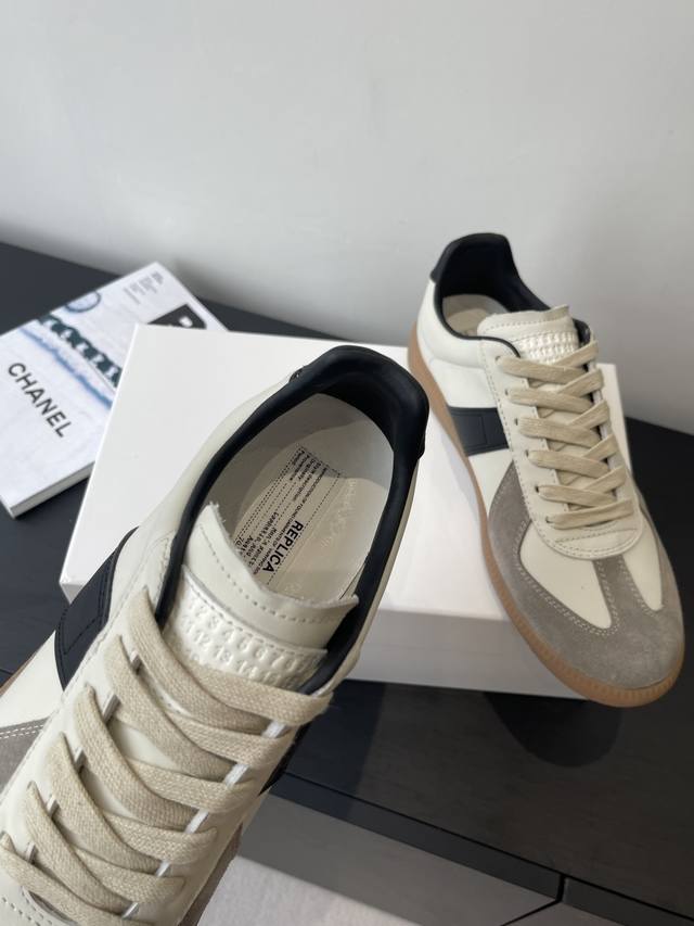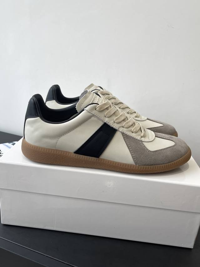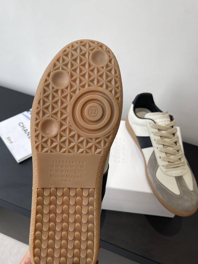 Maisonmargiela Mm6 马吉拉 经典德训鞋 休闲运动鞋 情侣款 鬼才设计师品牌一个轻奢品牌 这一款德国训练鞋延续了经典的T形真皮拼接设计 经过设计团队多次的精心改良 柔软细腻的特点与时尚潮流的布面相结合 使其既有超高的柔软舒适度 又同时保持不错的透气性能~舒适与质感并行 轻松驾驭四季穿着任何搭配原版定制进口牛皮 麂皮 帆布内里 进口柔软羊皮里 原版开模橡胶耐磨牛筋底码数:女35-40 男39-45 女40 男45定做不退换