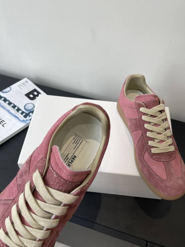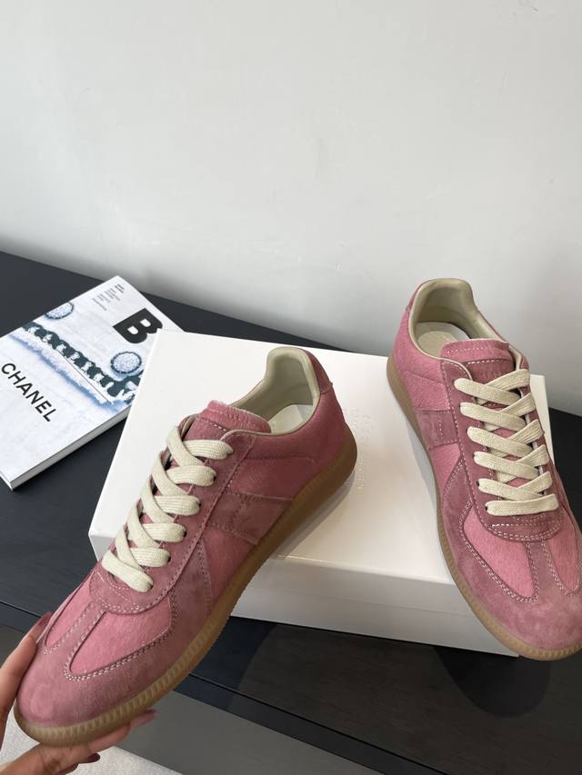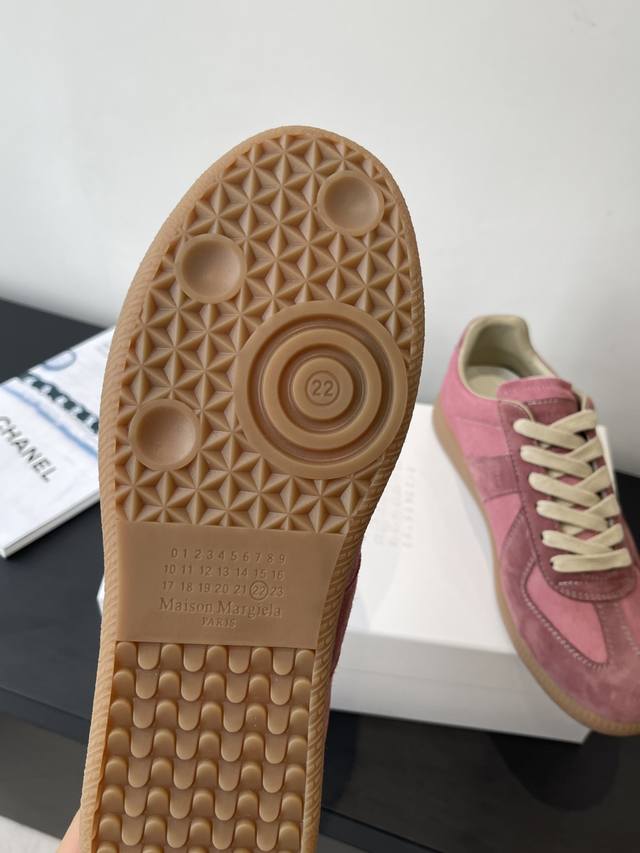 Maisonmargiela Mm6 马吉拉 经典德训鞋 休闲运动鞋 情侣款 鬼才设计师品牌一个轻奢品牌 这一款德国训练鞋延续了经典的T形真皮拼接设计 经过设计团队多次的精心改良 柔软细腻的特点与时尚潮流的布面相结合 使其既有超高的柔软舒适度 又同时保持不错的透气性能~舒适与质感并行 轻松驾驭四季穿着任何搭配原版定制进口牛皮 麂皮 帆布内里 进口柔软羊皮里 原版开模橡胶耐磨牛筋底码数:女35-40 男39-45 女40 男45定做不退换
