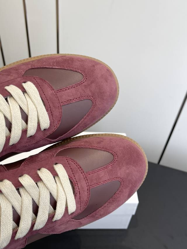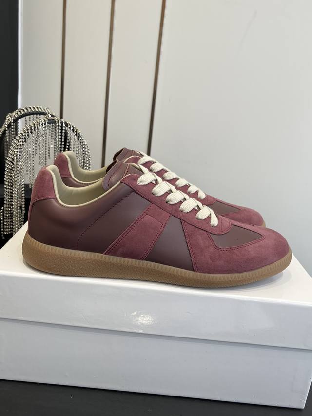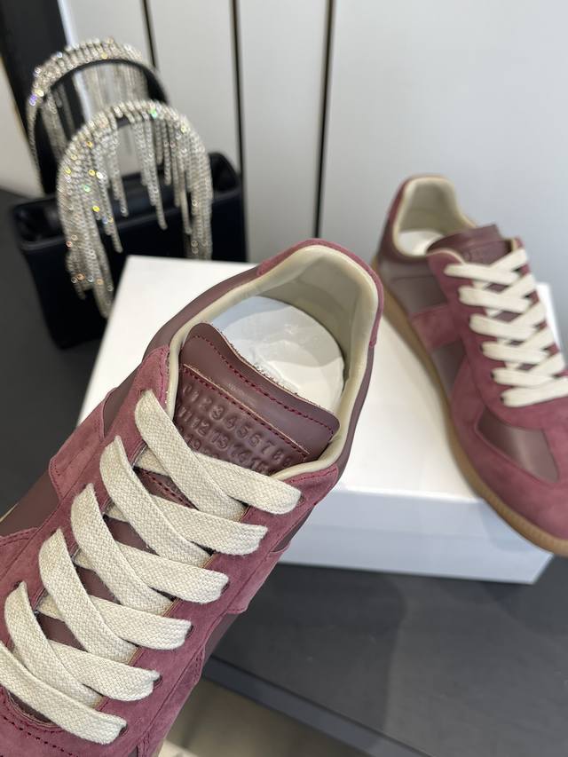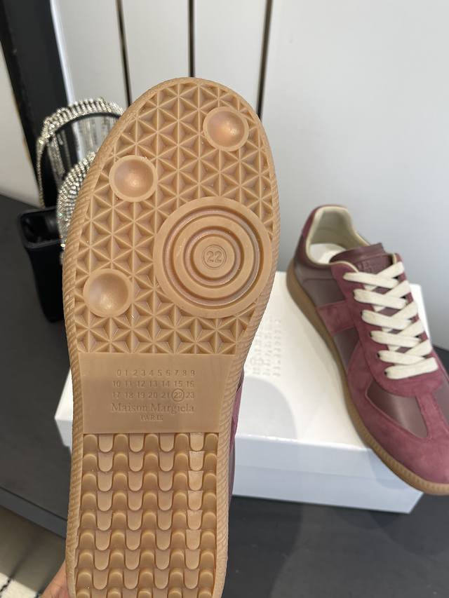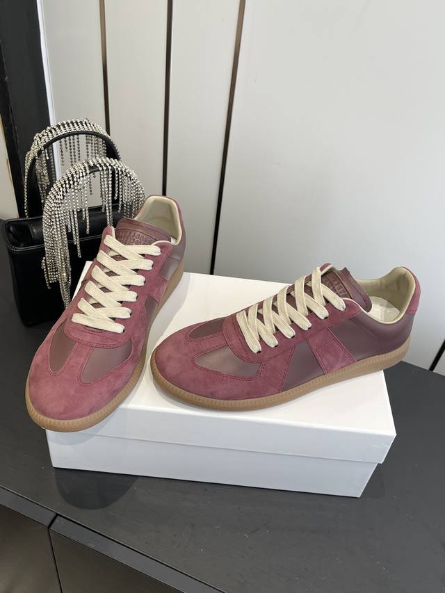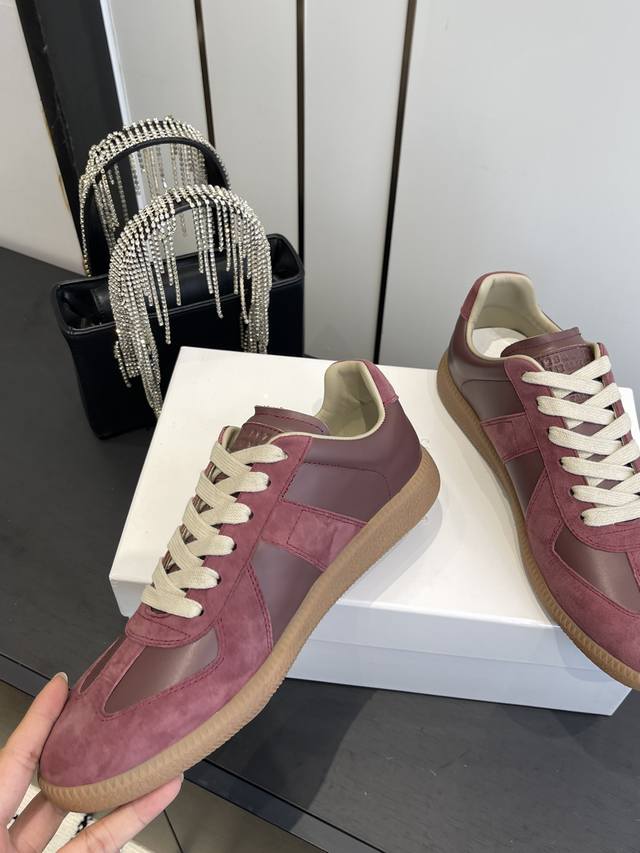 Maisonmargiela Mm6 马吉拉 经典德训鞋 休闲运动鞋 情侣款 鬼才设计师品牌一个轻奢品牌 这一款德国训练鞋延续了经典的T形真皮拼接设计 经过设计团队多次的精心改良 柔软细腻的特点与时尚潮流的布面相结合 使其既有超高的柔软舒适度 又同时保持不错的透气性能~舒适与质感并行 轻松驾驭四季穿着任何搭配 原版定制进口牛皮 麂皮 帆布 内里 进口柔软羊皮里 原版开模橡胶耐磨牛筋底 码数:35-45 女40 男45定做