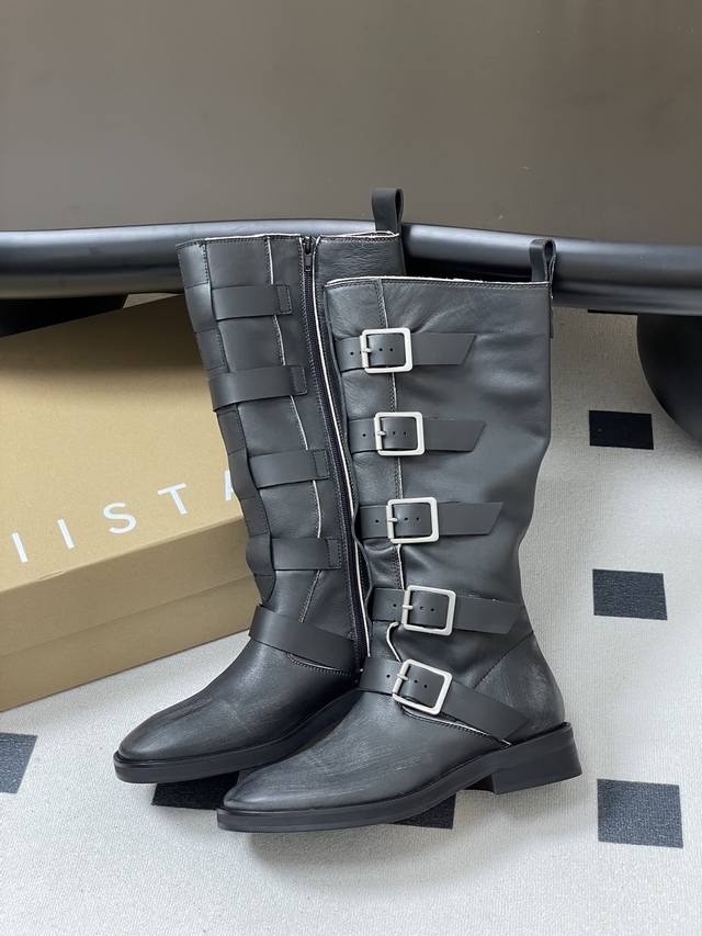 Miista 25Ss秋冬新款 搭扣机车风真皮长靴侧拉链长筒骑士靴 高品质的质量 拿到手你就知道它有多值!绝对超出你的想象,这种看似简单的款式超级百搭,无论搭配什么颜色衣服都非常棒,简单款不怕多好穿又好看 随搭都散发出帅气的法式街头风 这双Miista靴子真是怎么搭怎么好看 每次搭完一身不知道穿什么鞋,选它都不会错 配裙子好看 配裤子也好看,不愧是好多人推荐过的靴型 穿上会显得小腿超细 鞋面:牛皮 内里垫脚:羊皮 鞋底:意大利真皮大底组合橡胶前掌 码数:35-39 40定做不退换