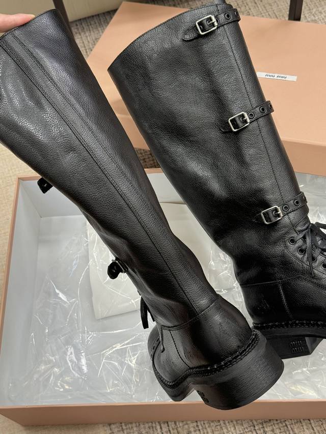 Miu 24秋冬长靴 顶版! 独家版本,超多版本甄别清楚哦 Miu24秋冬超火得长靴,上脚超显腿直,超时髦呀! 原版定制定染小牛皮,内里水染小牛皮!皮料工艺细节