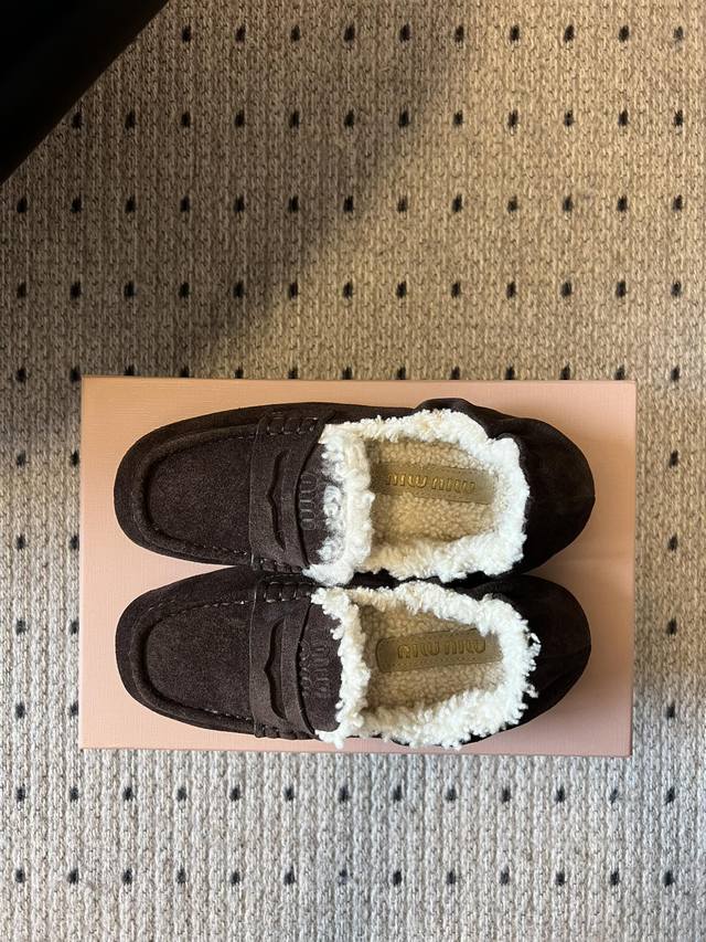 Miu Mi* 25Ss秀款包头毛毛乐福鞋 十足对版 出入柜柜无压力 太火爆了!热门款时尚元素,Miu Logo高级感,早秋随意搭配, 脚感无敌,时尚的轮回Miumiu以开挂模式引领潮流 鞋面:牛反绒 内里:羊毛 大底:橡胶底 码数:35-41 40.41定做不退不换
