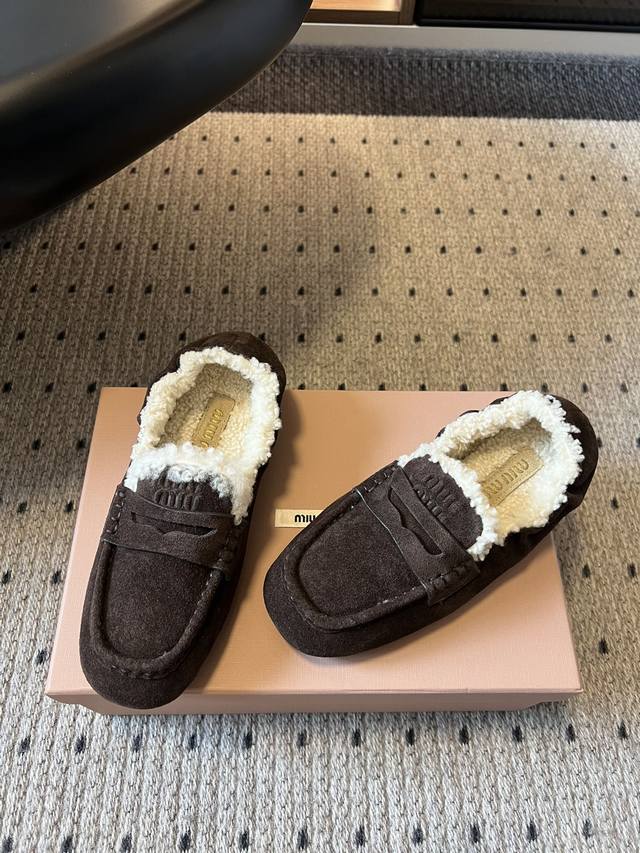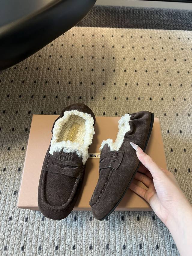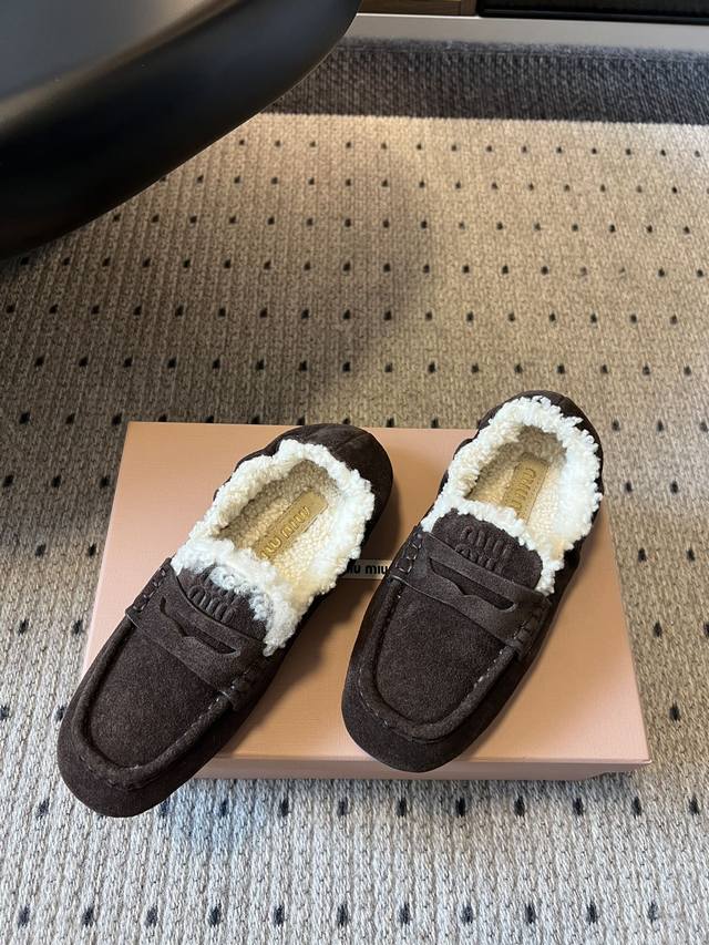 / Miu Mi* 25Ss秀款包头毛毛乐福鞋 十足对版 出入柜柜无压力 太火爆了!热门款时尚元素,Miu Logo高级感,早秋随意搭配, 脚感无敌,时尚的轮回Mi