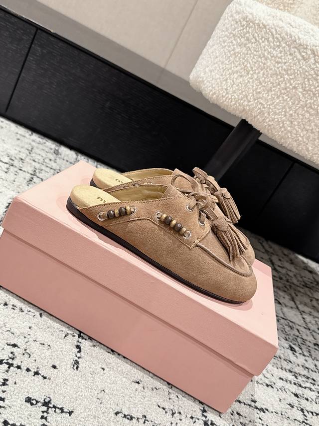 Miu Miu 繆繆 25 Fw Deck Shoes 流苏 麂皮船鞋 豆豆鞋 Miumiu家新款Deck Shoes也太有设计感了吧,秋冬氛围感拉满,舒适又时尚,秋冬新款麂皮一脚蹬,俏皮的系带流苏,复古的干异色系,内里磨毛的设计让穿着体验度更加高涨 面料:牛反绒 内里:双面绒 大底:橡胶大底 Size:#35-41 40.41定制不退换