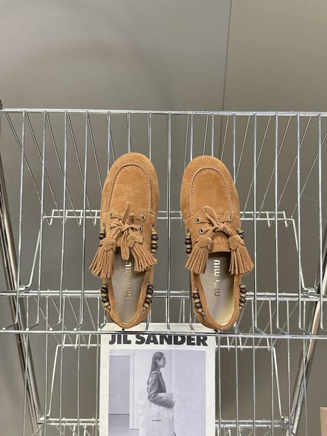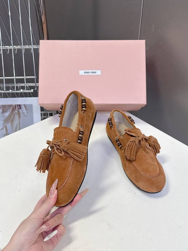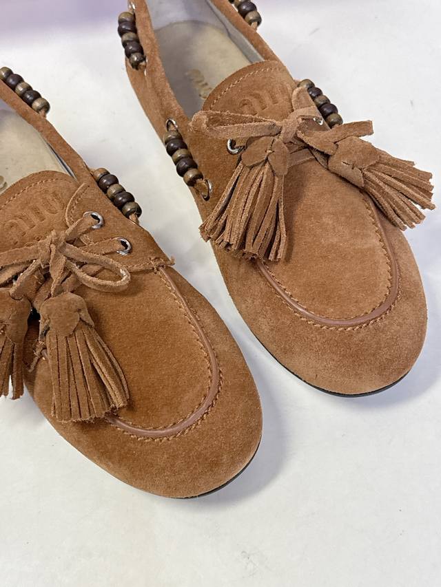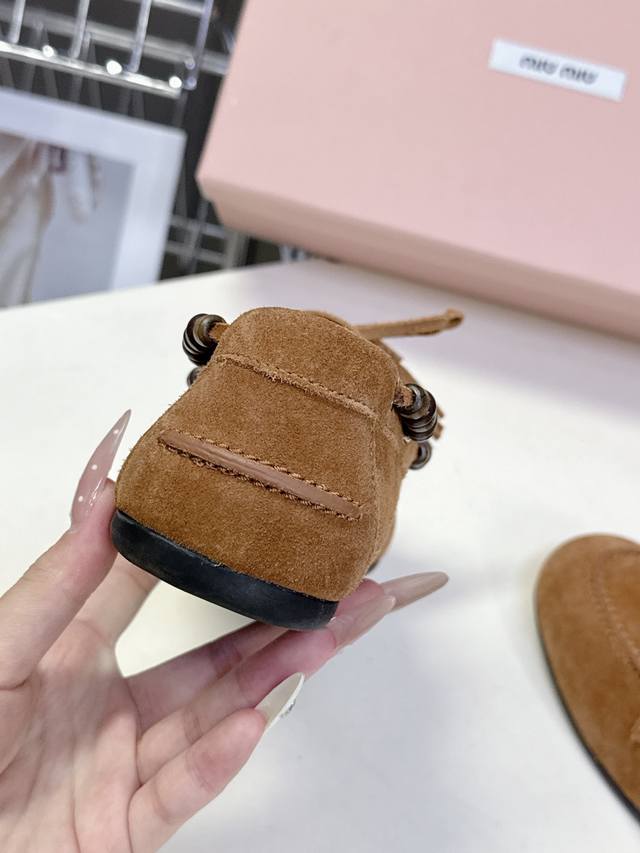 Miu Miu 缪缪米兰走秀款春夏半拖豆豆鞋 “邋遢”来自Miu Miu系列的细节特写 以双色鞋带样式呈现 . 新季的潮流要素一 适当与皮革的印记,夸张地表达时光的流逝,传递曾经使用与此刻挚爱的概念,多元对撞,传达现代风格~怎么穿都好看今夏时髦精最爱 看起来不怎么舒服 上脚超级舒服面料:进口原版牛皮高丝光 内里:原版牛皮 大底:原版防滑鞋底Size:35-40
