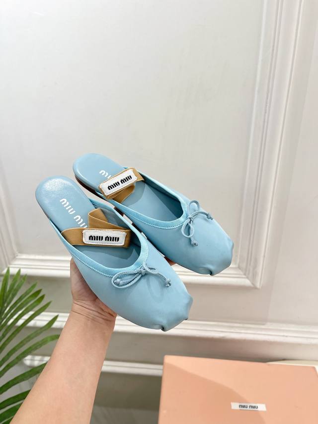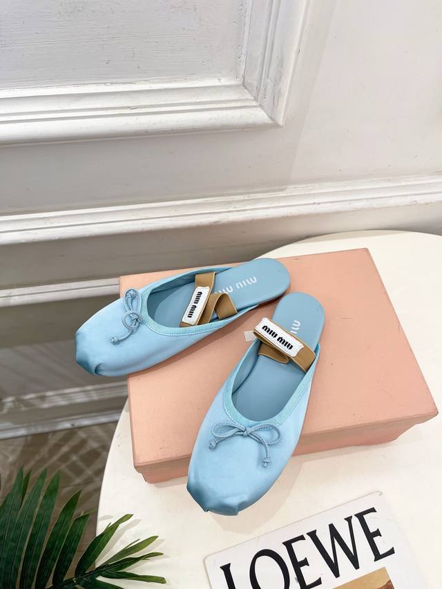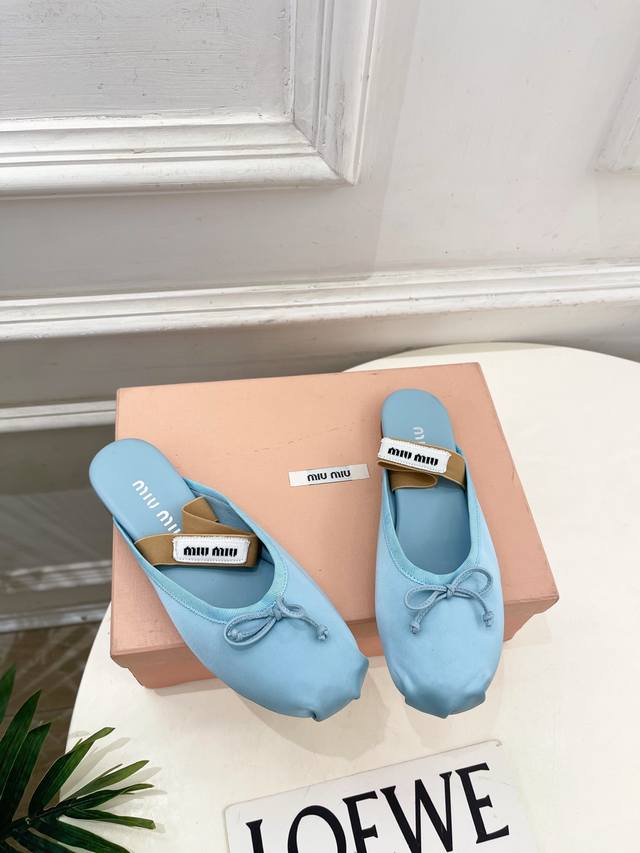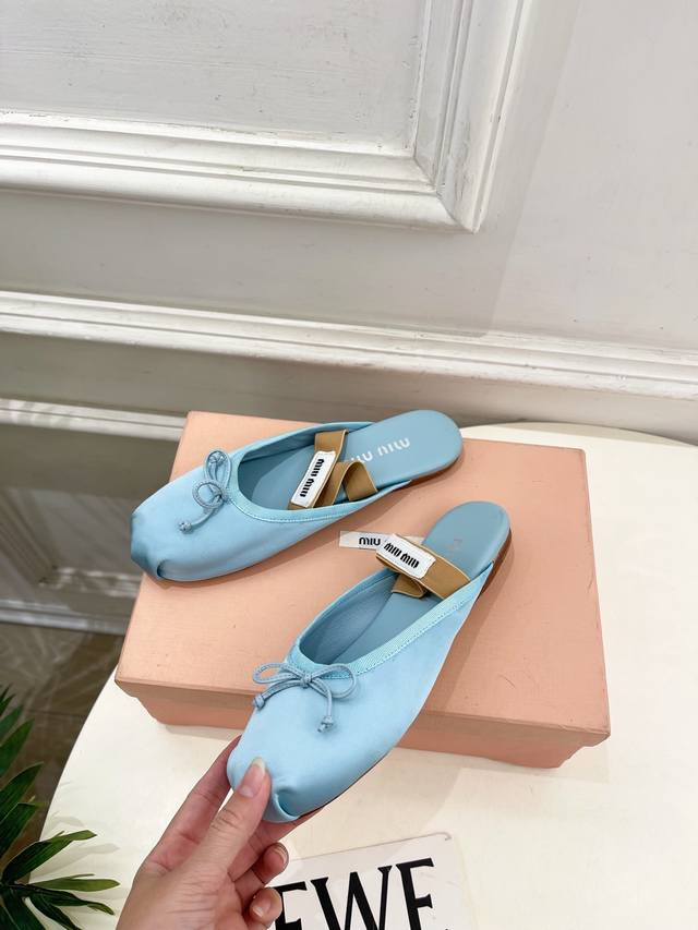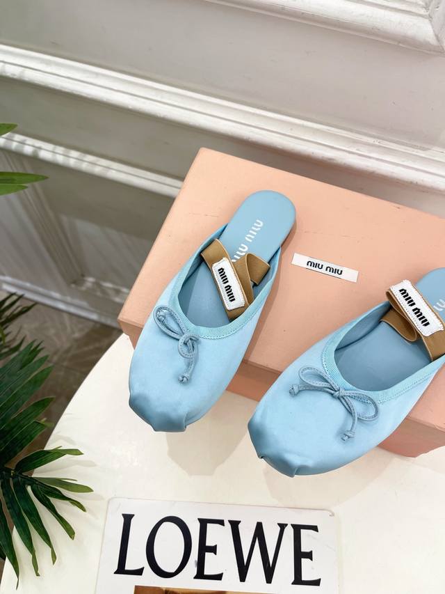 Miu Miu 缪缪 25 DDD 2025秋冬新品 专柜主打最新走秀款 经典蝴蝶结微标弹力带半拖鞋 火爆上新! DDD Bs缪家高货 顶级工艺打造精品质感 无敌舒适 绝对是一见钟情款!时尚百搭,人手必备! DDD T DDD 鞋面:进口顶级定制绸缎 羊皮 羊绒 DDD 内里: 进口羊皮里 DDD 大底:原版进口真皮大底 DDD 跟高:平底 DDD 鞋码: 35-39 40.41定制不退换 DDD 出厂价pp: DDD
