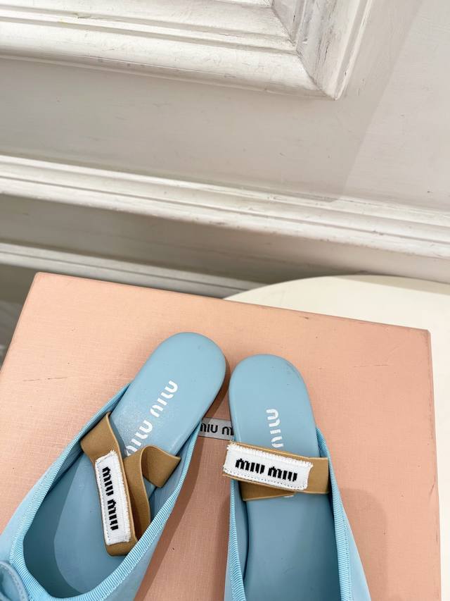 Miu Miu 缪缪 25 2025秋冬新品 专柜主打最新走秀款 经典蝴蝶结微标弹力带半拖鞋 火爆上新! Bs缪家高货 顶级工艺打造精品质感 无敌舒适 绝对是一