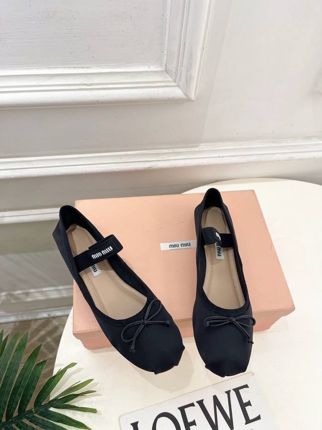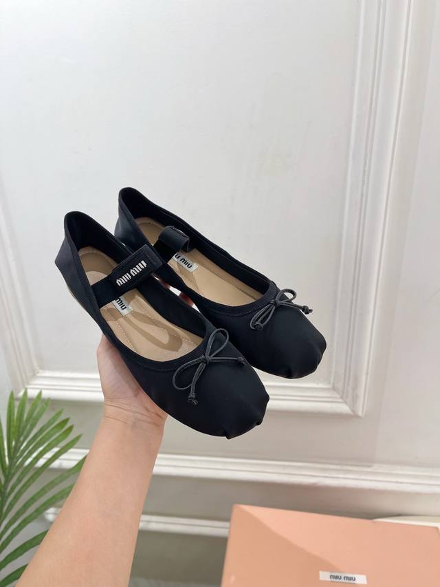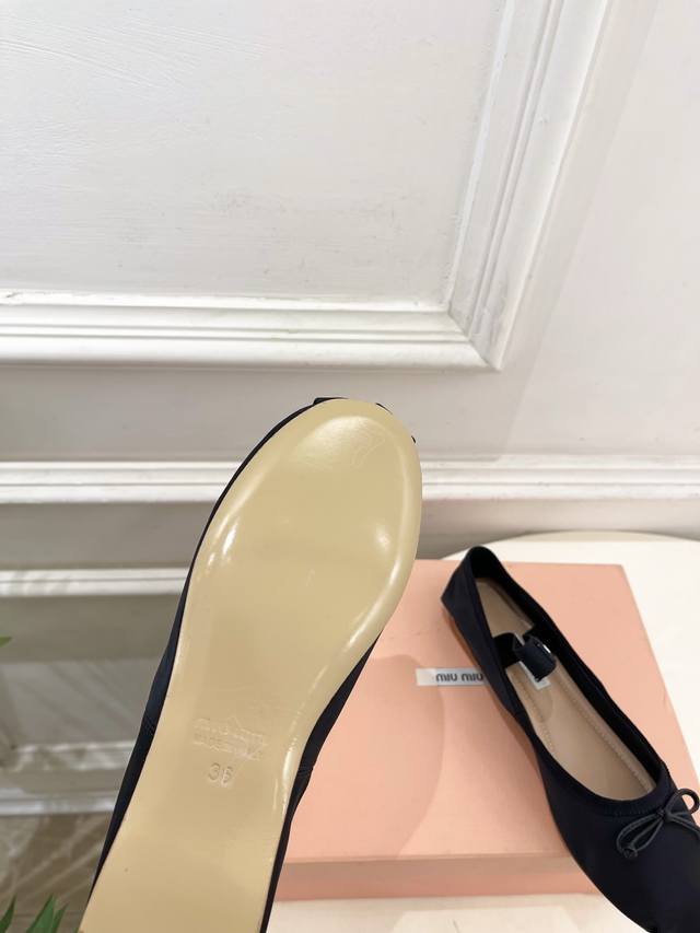Miu Miu 缪缪 25 DDD 2025秋冬新品 专柜主打最新走秀款 经典蝴蝶结微标弹力带芭蕾平底鞋 火爆上新! DDD Bs缪家高货 顶级工艺打造精品质感 无敌舒适 绝对是一见钟情款!时尚百搭,人手必备! DDD T DDD 鞋面:进口顶级定制缎面 DDD 内里: 进口羊皮里 DDD 大底:原版进口真皮大底 DDD 跟高:平底 DDD 鞋码: 35-39 40.41定制不退换 DDD 出厂价pp: DDD