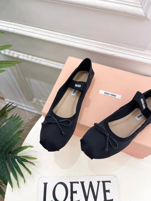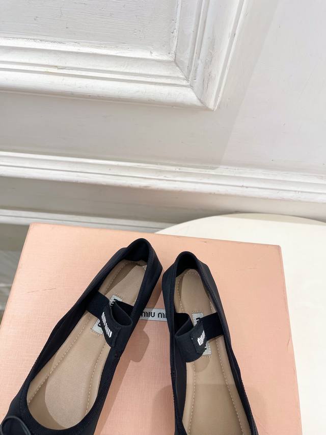 Miu Miu 缪缪 25 2025秋冬新品 专柜主打最新走秀款 经典蝴蝶结微标弹力带芭蕾平底鞋 火爆上新! Bs缪家高货 顶级工艺打造精品质感 无敌舒适 绝对