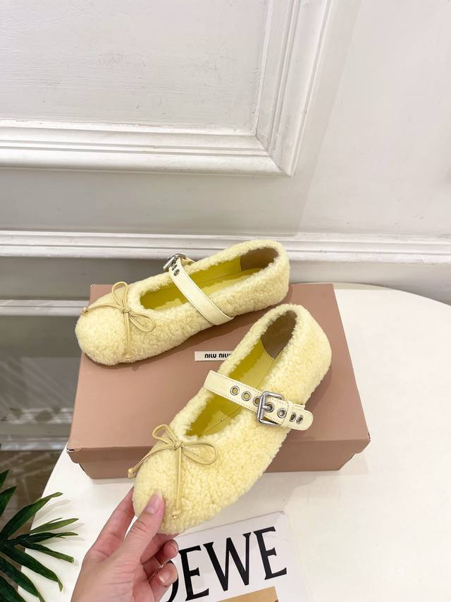 Miu Miu 缪缪 25 2025秋冬新品 专柜主打最新走秀款Naplak玛丽珍芭蕾平底毛毛鞋火爆上新! 缪家高货 顶级工艺打造精品质感 无敌舒适 绝对是一见